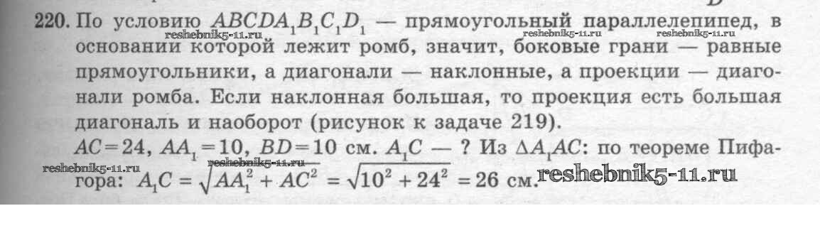 Готовая домашняя работа с ответами по Геометрии за 10, 11 класс Атанасян, Бутузов, Кадомцев, Киселева, Позняк Учебник Базовый и углубленный уровень Просвещение 2015 ФГОС - Задачи 220