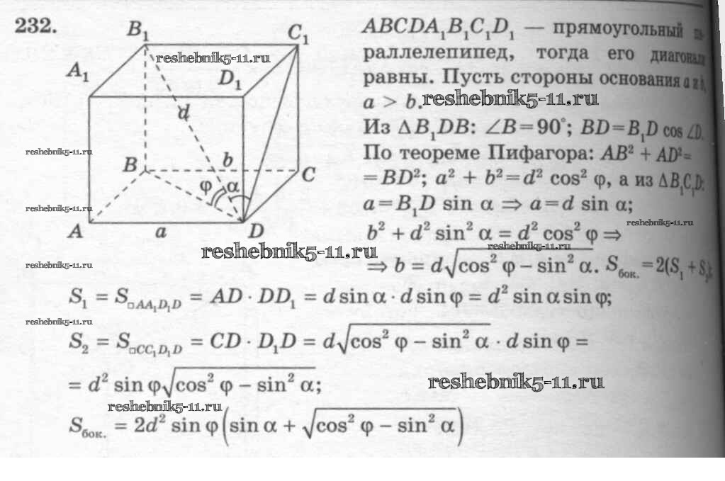 Готовая домашняя работа с ответами по Геометрии за 10, 11 класс Атанасян, Бутузов, Кадомцев, Киселева, Позняк Учебник Базовый и углубленный уровень Просвещение 2015 ФГОС - Задачи 232