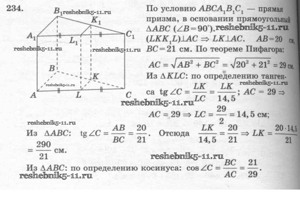 Готовая домашняя работа с ответами по Геометрии за 10, 11 класс Атанасян, Бутузов, Кадомцев, Киселева, Позняк Учебник Базовый и углубленный уровень Просвещение 2015 ФГОС - Задачи 234