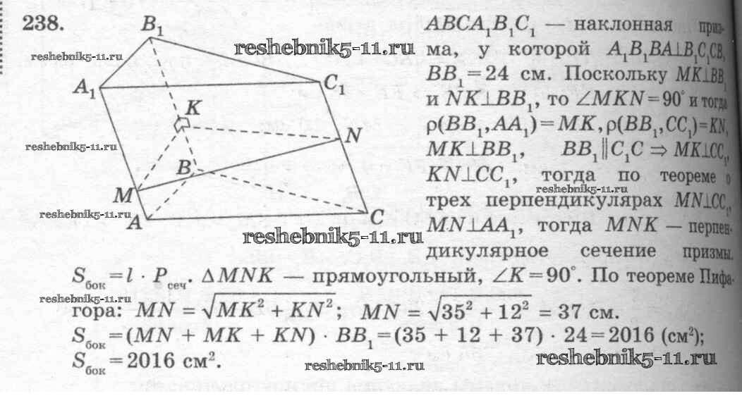 Готовая домашняя работа с ответами по Геометрии за 10, 11 класс Атанасян, Бутузов, Кадомцев, Киселева, Позняк Учебник Базовый и углубленный уровень Просвещение 2015 ФГОС - Задачи 238