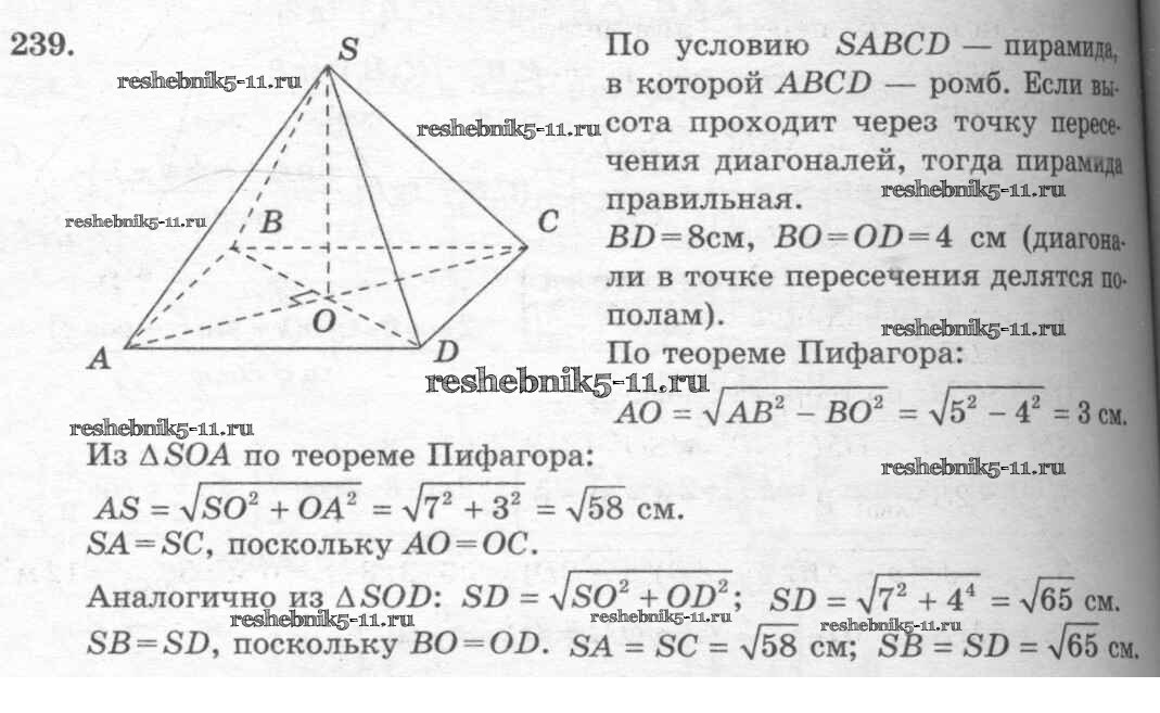 Готовая домашняя работа с ответами по Геометрии за 10, 11 класс Атанасян, Бутузов, Кадомцев, Киселева, Позняк Учебник Базовый и углубленный уровень Просвещение 2015 ФГОС - Задачи 239