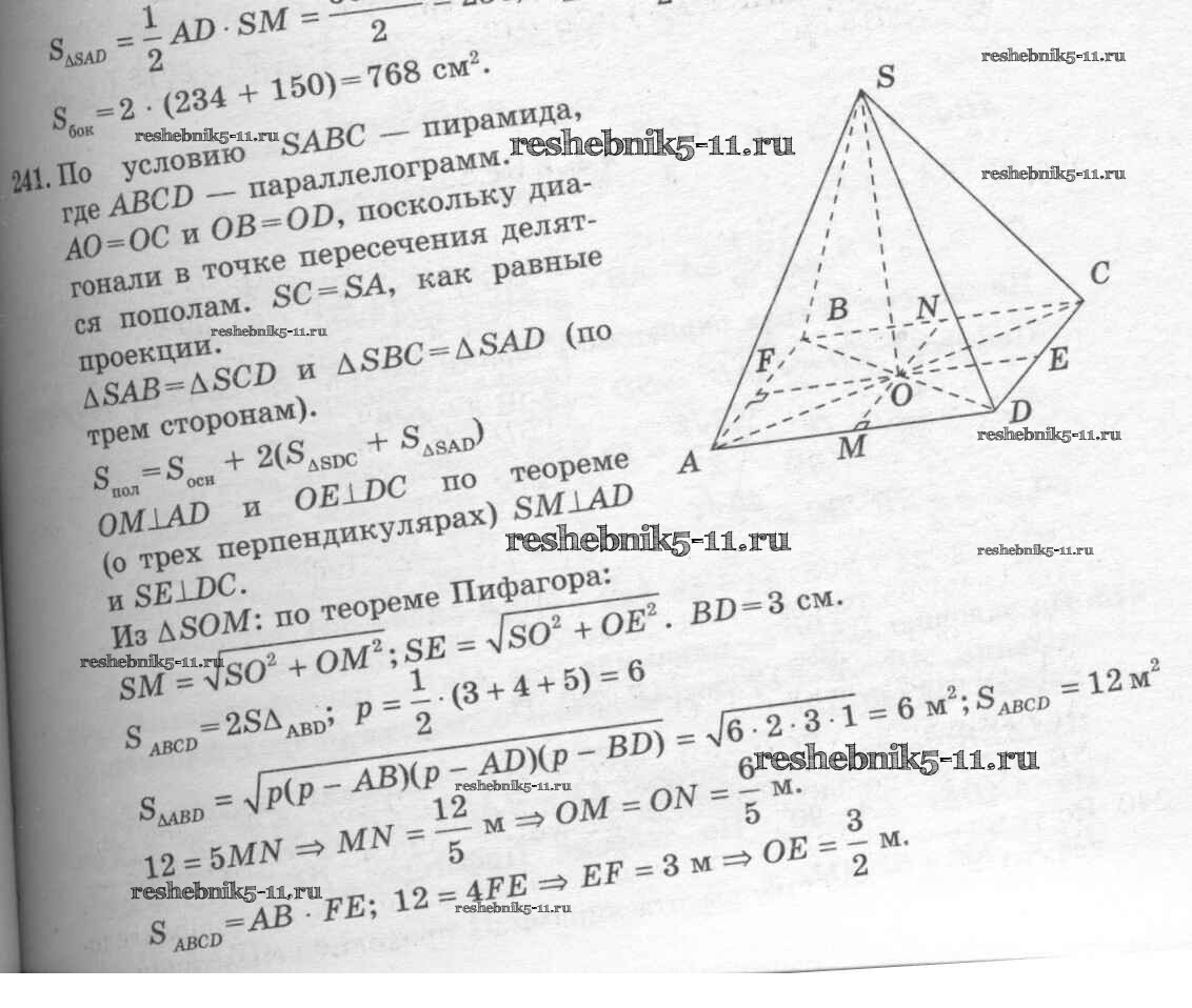 Готовая домашняя работа с ответами по Геометрии за 10, 11 класс Атанасян, Бутузов, Кадомцев, Киселева, Позняк Учебник Базовый и углубленный уровень Просвещение 2015 ФГОС - Задачи 241
