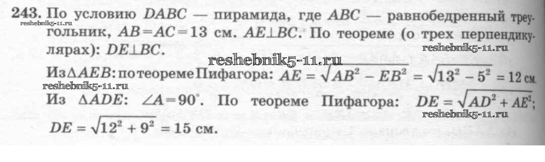 Готовая домашняя работа с ответами по Геометрии за 10, 11 класс Атанасян, Бутузов, Кадомцев, Киселева, Позняк Учебник Базовый и углубленный уровень Просвещение 2015 ФГОС - Задачи 243