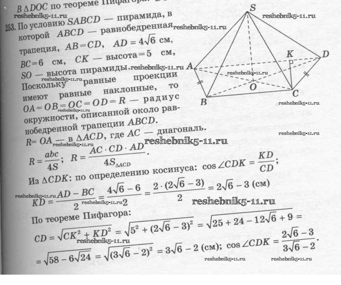 Готовая домашняя работа с ответами по Геометрии за 10, 11 класс Атанасян, Бутузов, Кадомцев, Киселева, Позняк Учебник Базовый и углубленный уровень Просвещение 2015 ФГОС - Задачи 253