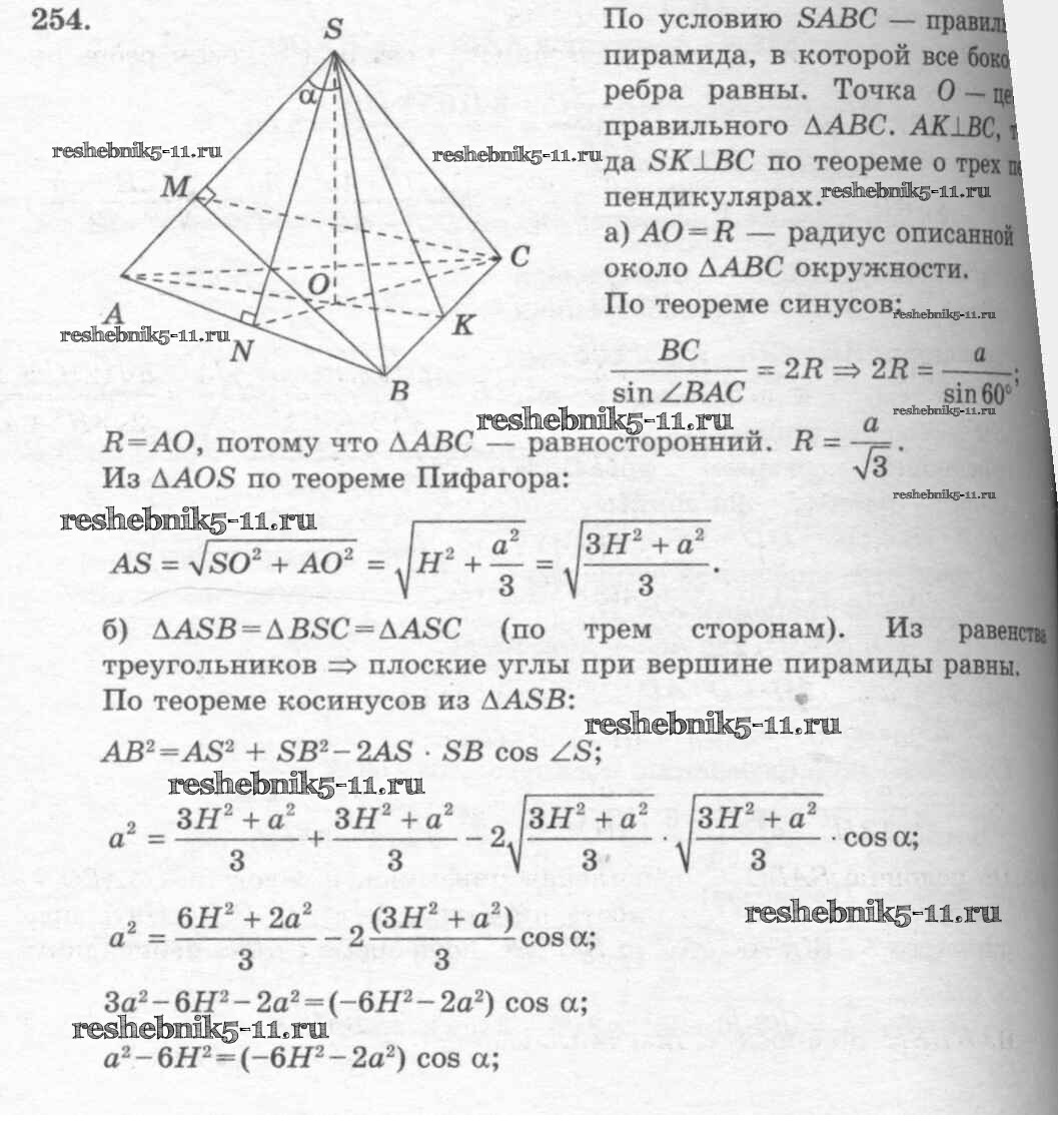 Готовая домашняя работа с ответами по Геометрии за 10, 11 класс Атанасян, Бутузов, Кадомцев, Киселева, Позняк Учебник Базовый и углубленный уровень Просвещение 2015 ФГОС - Задачи 254