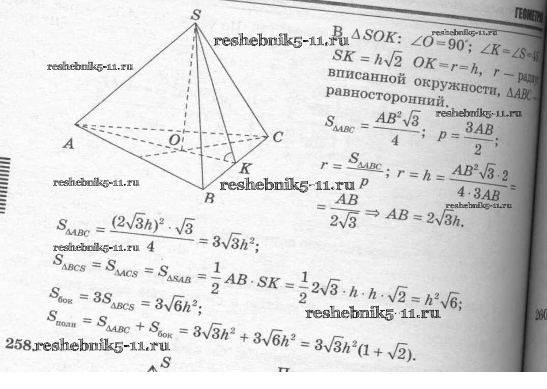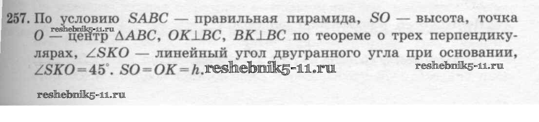 Готовая домашняя работа с ответами по Геометрии за 10, 11 класс Атанасян, Бутузов, Кадомцев, Киселева, Позняк Учебник Базовый и углубленный уровень Просвещение 2015 ФГОС - Задачи 257