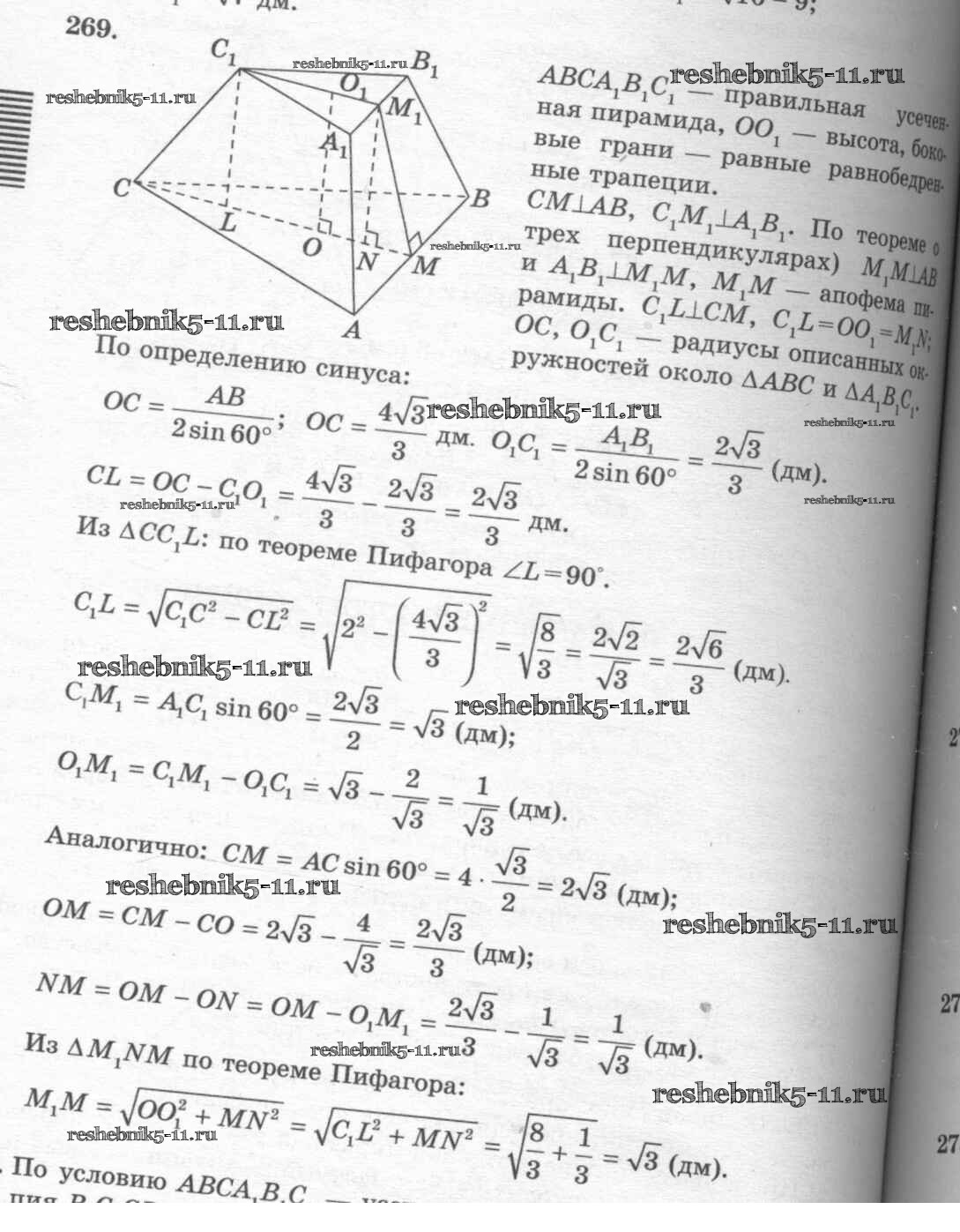 Готовая домашняя работа с ответами по Геометрии за 10, 11 класс Атанасян, Бутузов, Кадомцев, Киселева, Позняк Учебник Базовый и углубленный уровень Просвещение 2015 ФГОС - Задачи 269