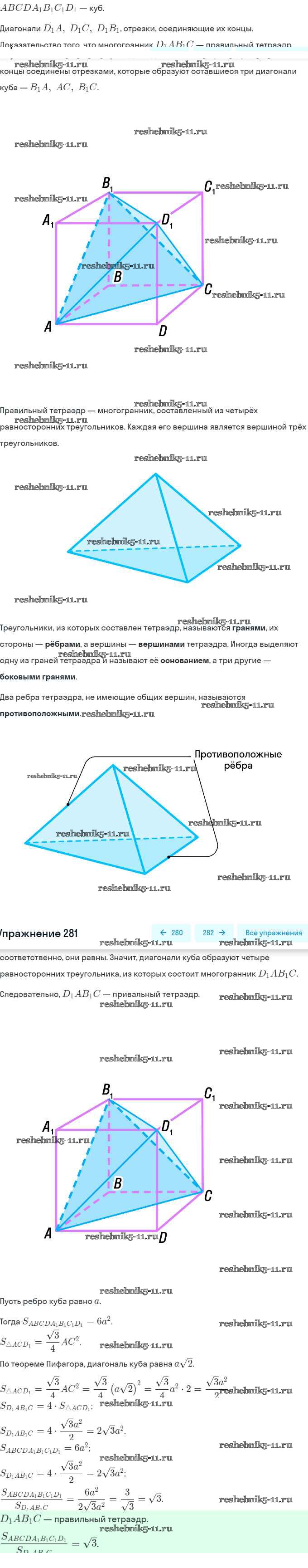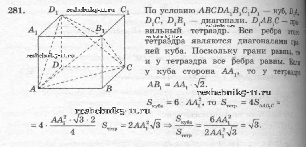 Готовая домашняя работа с ответами по Геометрии за 10, 11 класс Атанасян, Бутузов, Кадомцев, Киселева, Позняк Учебник Базовый и углубленный уровень Просвещение 2015 ФГОС - Задачи 281