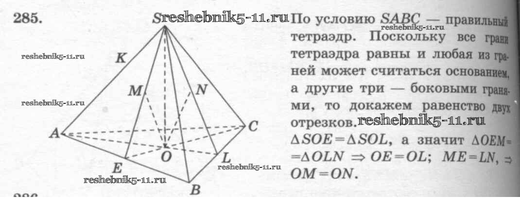 Готовая домашняя работа с ответами по Геометрии за 10, 11 класс Атанасян, Бутузов, Кадомцев, Киселева, Позняк Учебник Базовый и углубленный уровень Просвещение 2015 ФГОС - Задачи 285