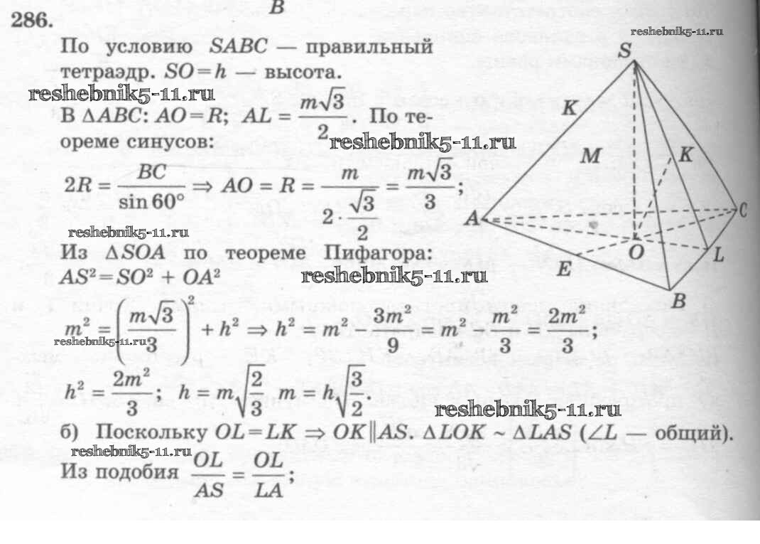 Готовая домашняя работа с ответами по Геометрии за 10, 11 класс Атанасян, Бутузов, Кадомцев, Киселева, Позняк Учебник Базовый и углубленный уровень Просвещение 2015 ФГОС - Задачи 286