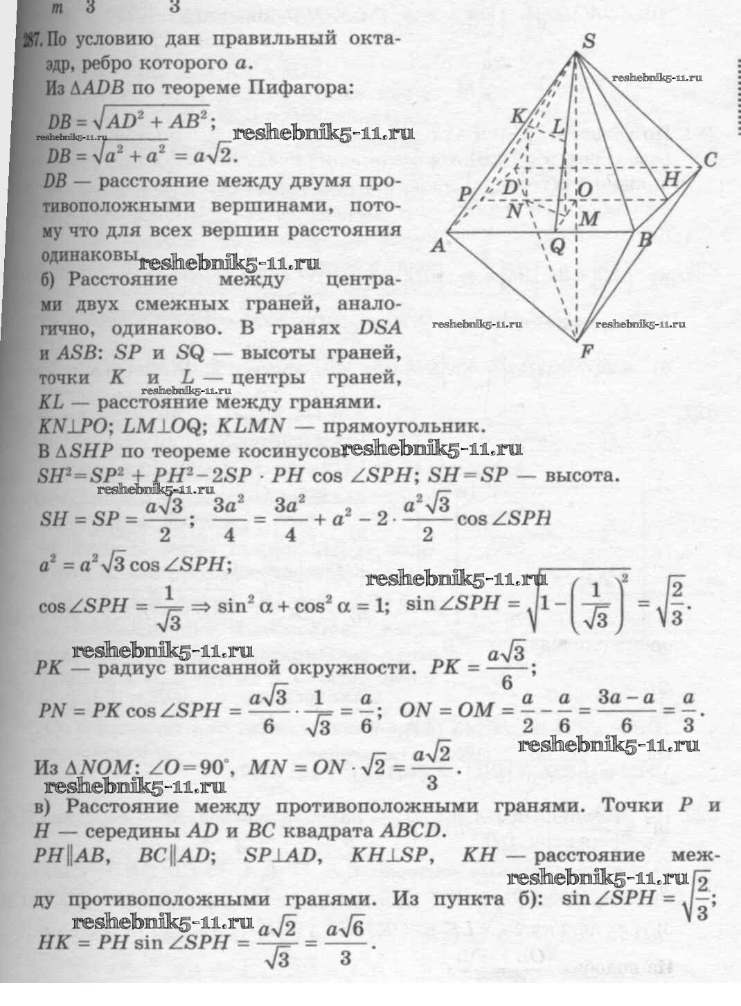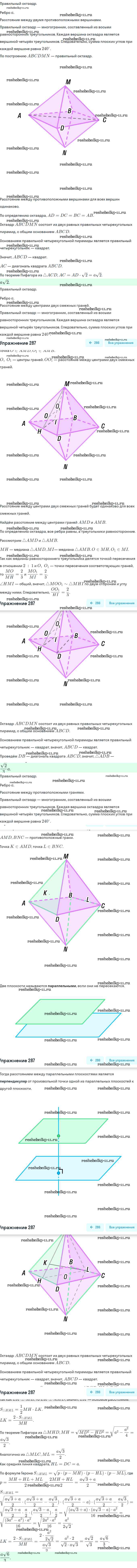 Готовая домашняя работа с ответами по Геометрии за 10, 11 класс Атанасян, Бутузов, Кадомцев, Киселева, Позняк Учебник Базовый и углубленный уровень Просвещение 2015 ФГОС - Задачи 287