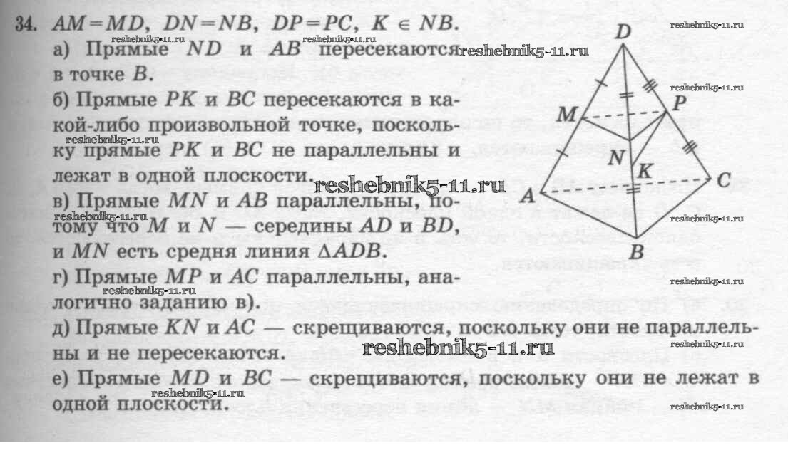 Готовая домашняя работа с ответами по Геометрии за 10, 11 класс Атанасян, Бутузов, Кадомцев, Киселева, Позняк Учебник Базовый и углубленный уровень Просвещение 2015 ФГОС - Задачи 34