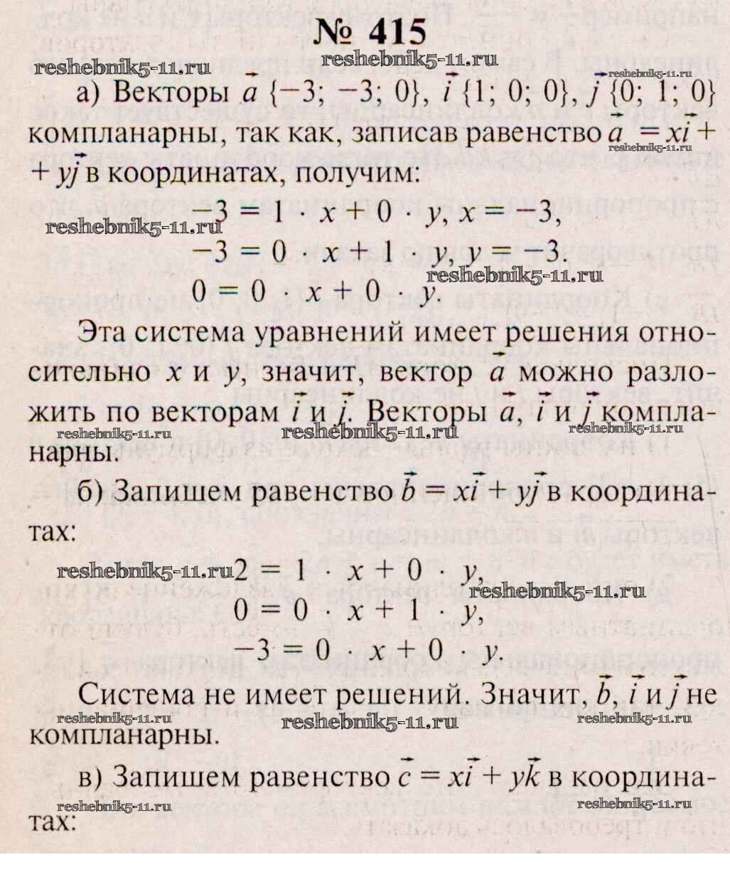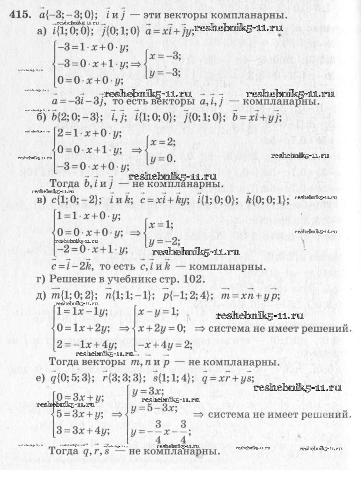 Готовая домашняя работа с ответами по Геометрии за 10, 11 класс Атанасян, Бутузов, Кадомцев, Киселева, Позняк Учебник Базовый и углубленный уровень Просвещение 2015 ФГОС - Задачи 415