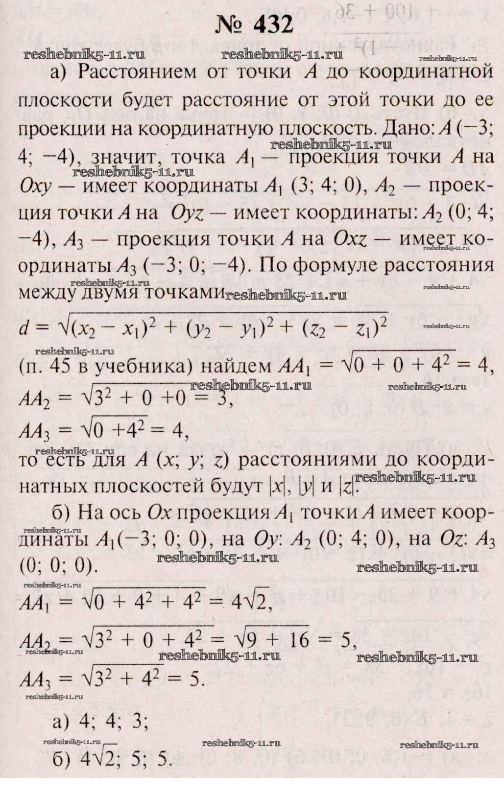 Готовая домашняя работа с ответами по Геометрии за 10, 11 класс Атанасян, Бутузов, Кадомцев, Киселева, Позняк Учебник Базовый и углубленный уровень Просвещение 2015 ФГОС - Задачи 432
