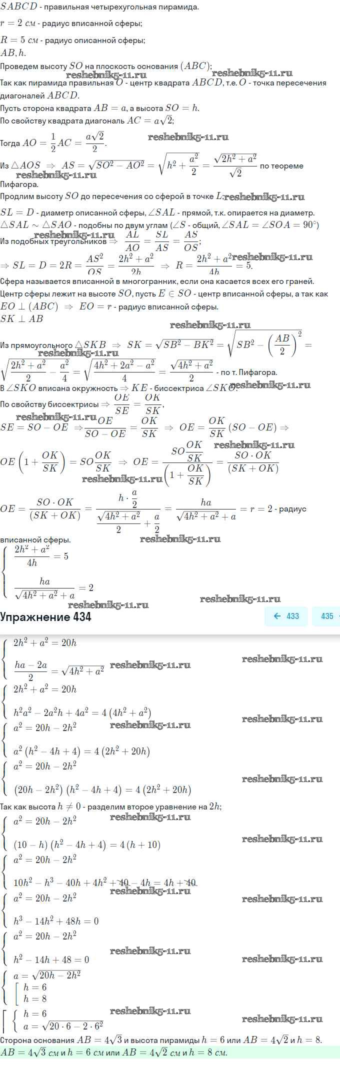 Готовая домашняя работа с ответами по Геометрии за 10, 11 класс Атанасян, Бутузов, Кадомцев, Киселева, Позняк Учебник Базовый и углубленный уровень Просвещение 2015 ФГОС - Задачи 434