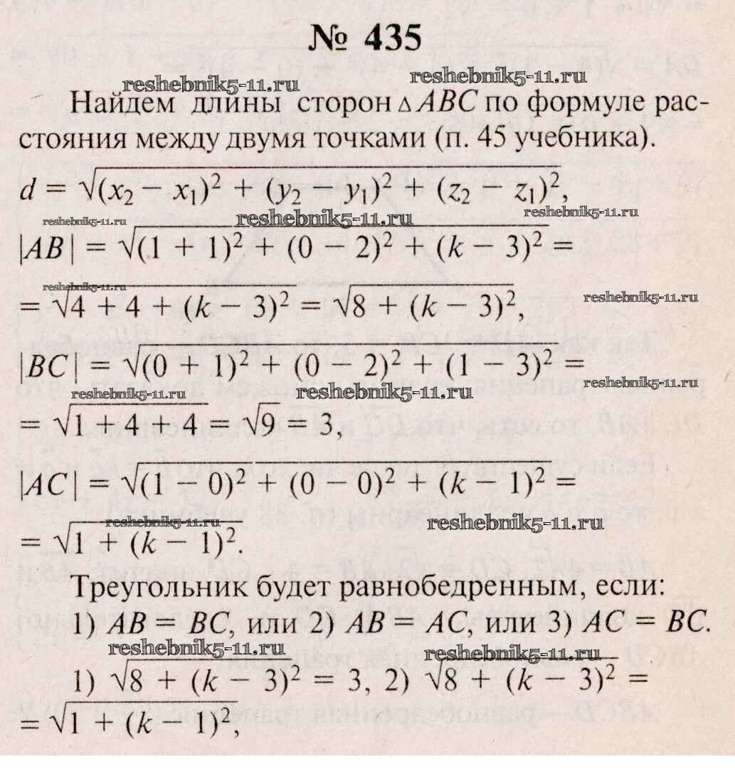 Готовая домашняя работа с ответами по Геометрии за 10, 11 класс Атанасян, Бутузов, Кадомцев, Киселева, Позняк Учебник Базовый и углубленный уровень Просвещение 2015 ФГОС - Задачи 435
