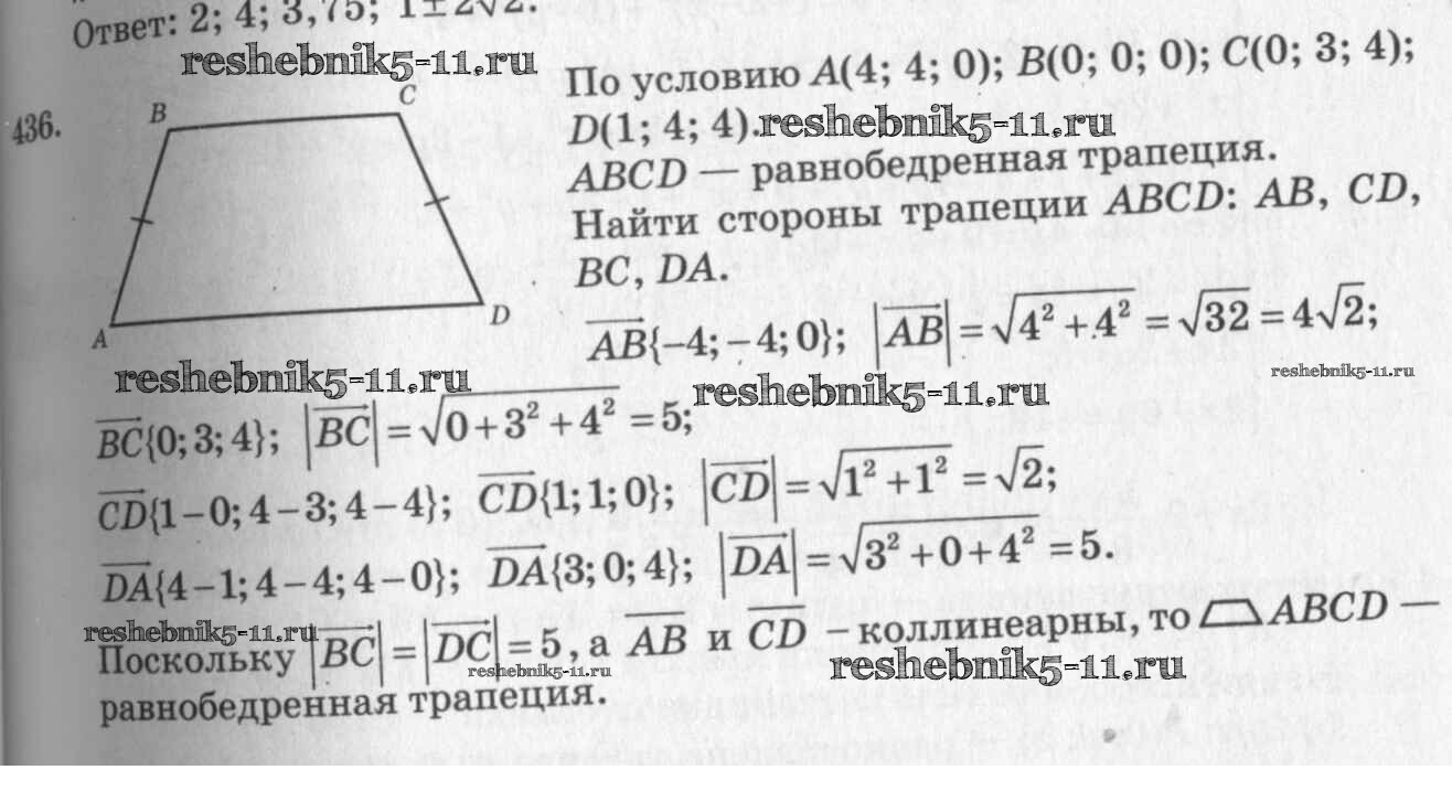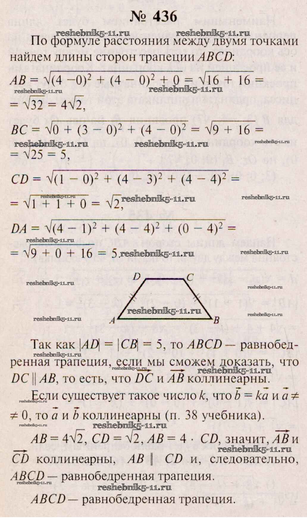 Готовая домашняя работа с ответами по Геометрии за 10, 11 класс Атанасян, Бутузов, Кадомцев, Киселева, Позняк Учебник Базовый и углубленный уровень Просвещение 2015 ФГОС - Задачи 436