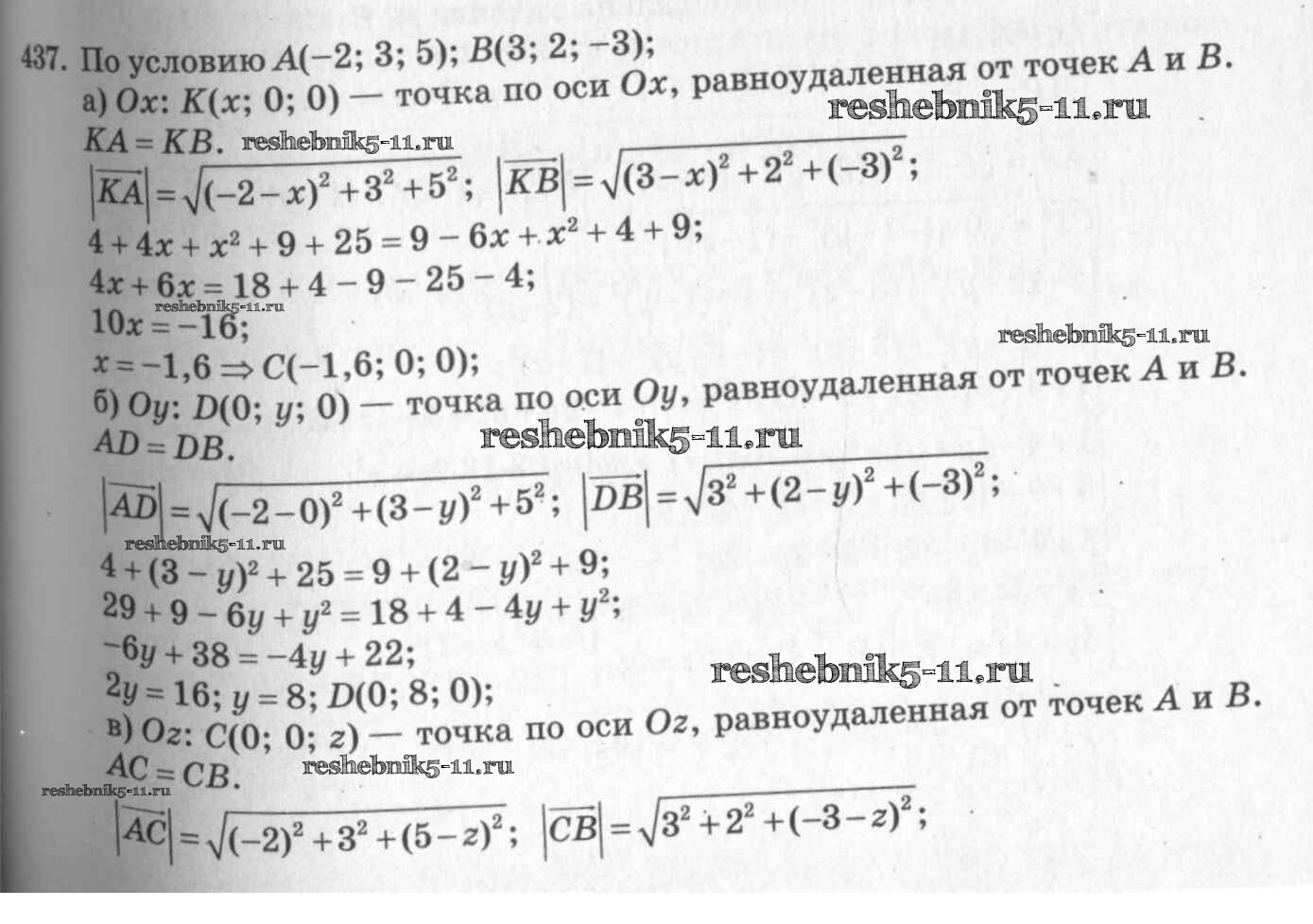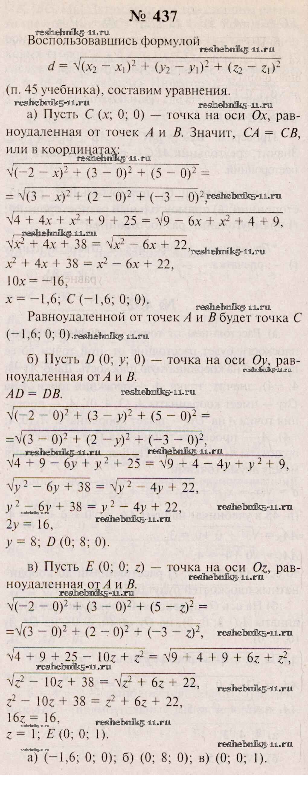 Готовая домашняя работа с ответами по Геометрии за 10, 11 класс Атанасян, Бутузов, Кадомцев, Киселева, Позняк Учебник Базовый и углубленный уровень Просвещение 2015 ФГОС - Задачи 437