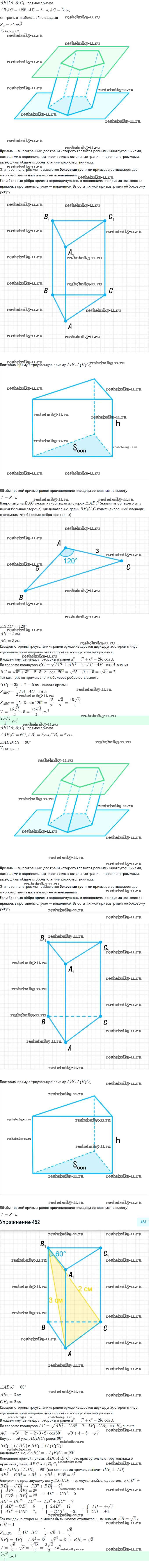 Готовая домашняя работа с ответами по Геометрии за 10, 11 класс Атанасян, Бутузов, Кадомцев, Киселева, Позняк Учебник Базовый и углубленный уровень Просвещение 2015 ФГОС - Задачи 452