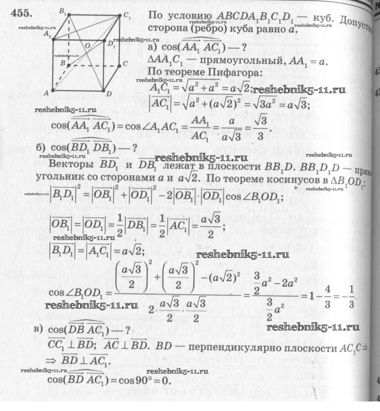 Готовая домашняя работа с ответами по Геометрии за 10, 11 класс Атанасян, Бутузов, Кадомцев, Киселева, Позняк Учебник Базовый и углубленный уровень Просвещение 2015 ФГОС - Задачи 455