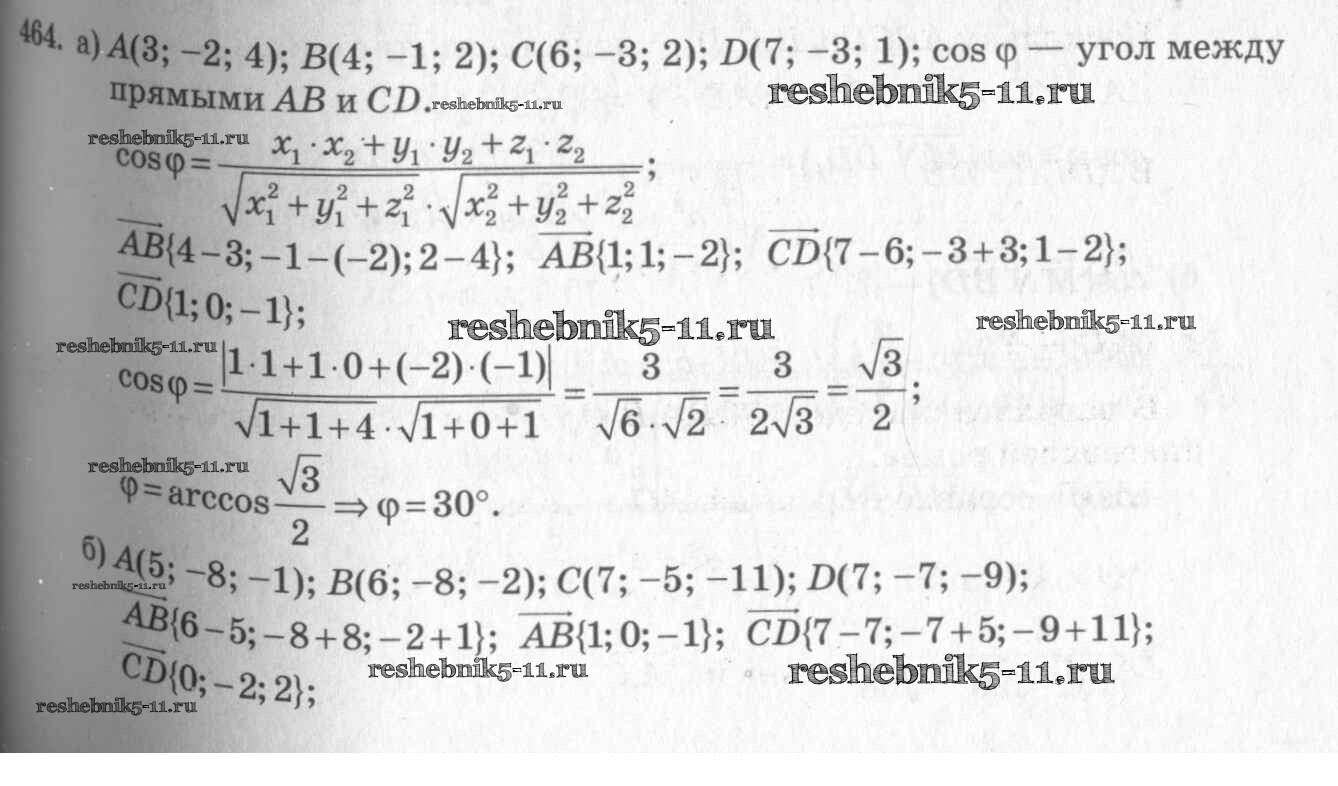 Готовая домашняя работа с ответами по Геометрии за 10, 11 класс Атанасян, Бутузов, Кадомцев, Киселева, Позняк Учебник Базовый и углубленный уровень Просвещение 2015 ФГОС - Задачи 464