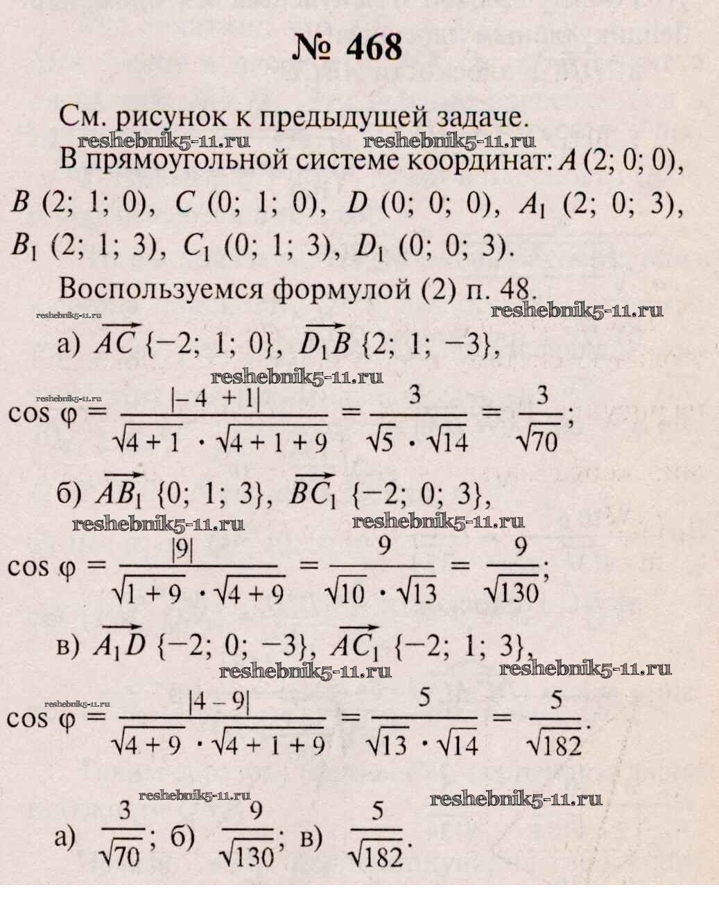 Готовая домашняя работа с ответами по Геометрии за 10, 11 класс Атанасян, Бутузов, Кадомцев, Киселева, Позняк Учебник Базовый и углубленный уровень Просвещение 2015 ФГОС - Задачи 468