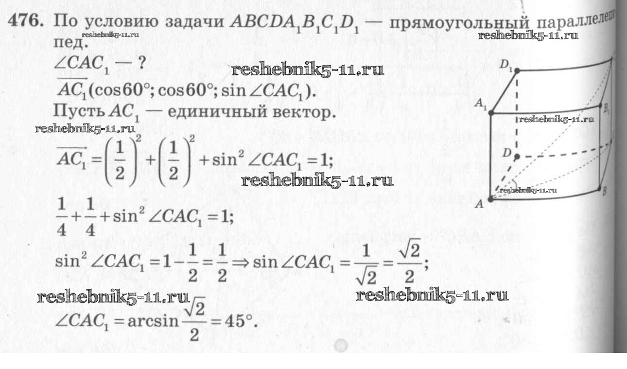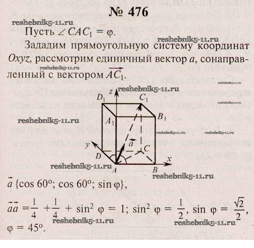 Готовая домашняя работа с ответами по Геометрии за 10, 11 класс Атанасян, Бутузов, Кадомцев, Киселева, Позняк Учебник Базовый и углубленный уровень Просвещение 2015 ФГОС - Задачи 476