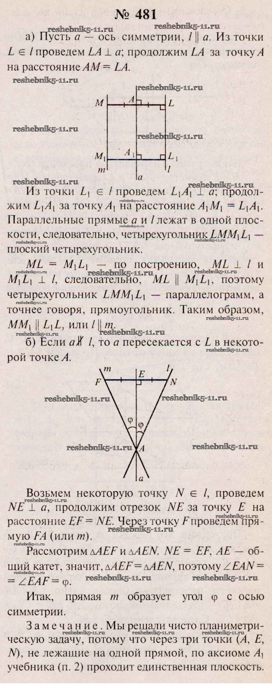Геометрия за 10-11 класс Атанасян Учебник Базовый и углубленный уровень Просвещение задача 481