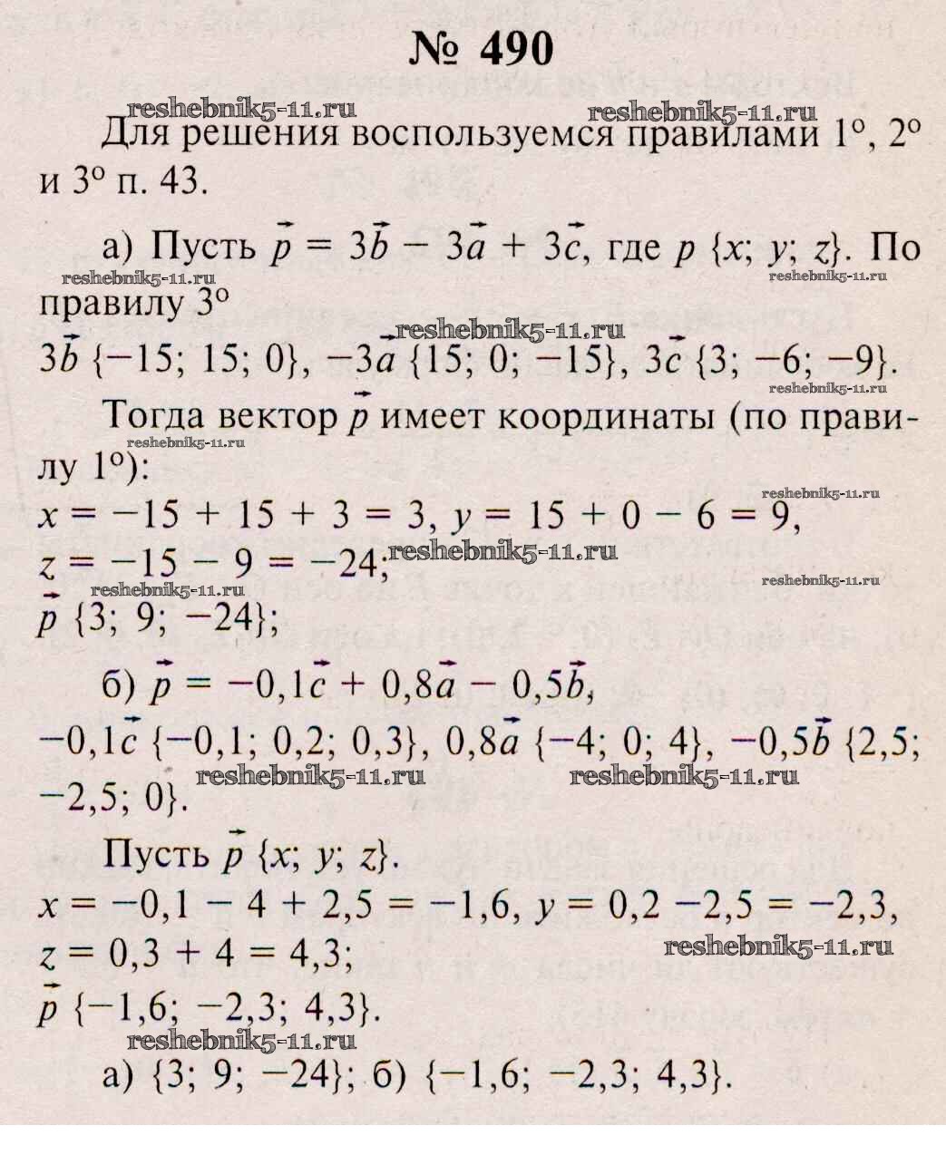 Готовая домашняя работа с ответами по Геометрии за 10, 11 класс Атанасян, Бутузов, Кадомцев, Киселева, Позняк Учебник Базовый и углубленный уровень Просвещение 2015 ФГОС - Задачи 490