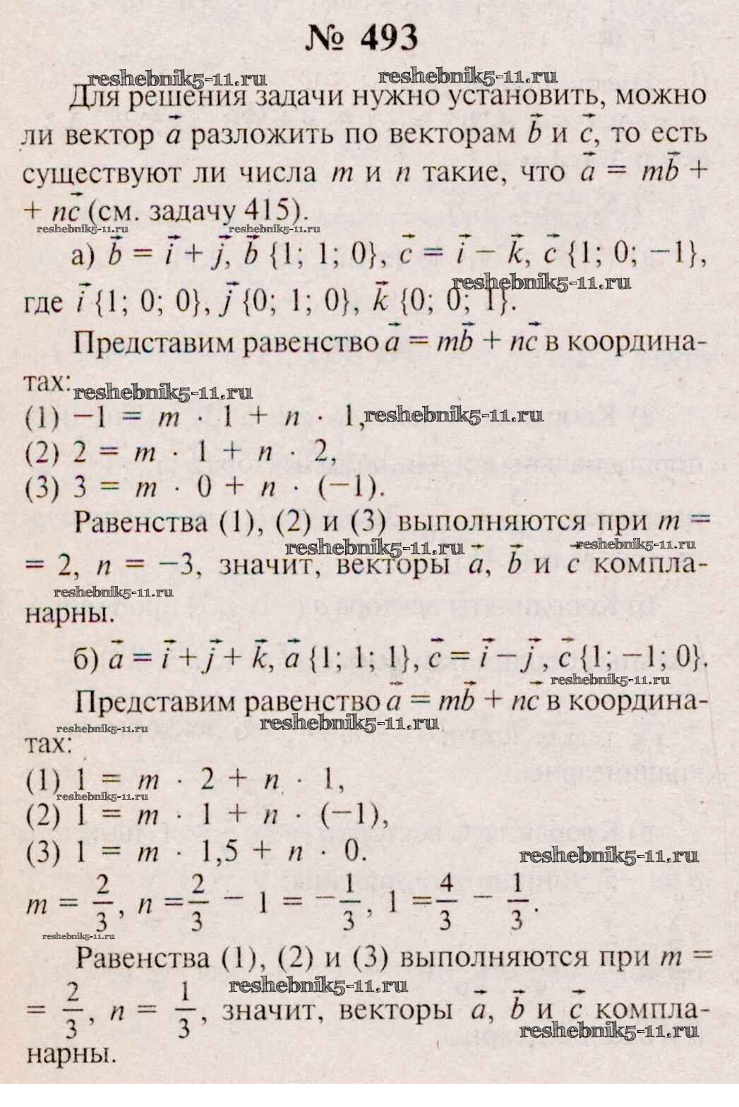 Готовая домашняя работа с ответами по Геометрии за 10, 11 класс Атанасян, Бутузов, Кадомцев, Киселева, Позняк Учебник Базовый и углубленный уровень Просвещение 2015 ФГОС - Задачи 493