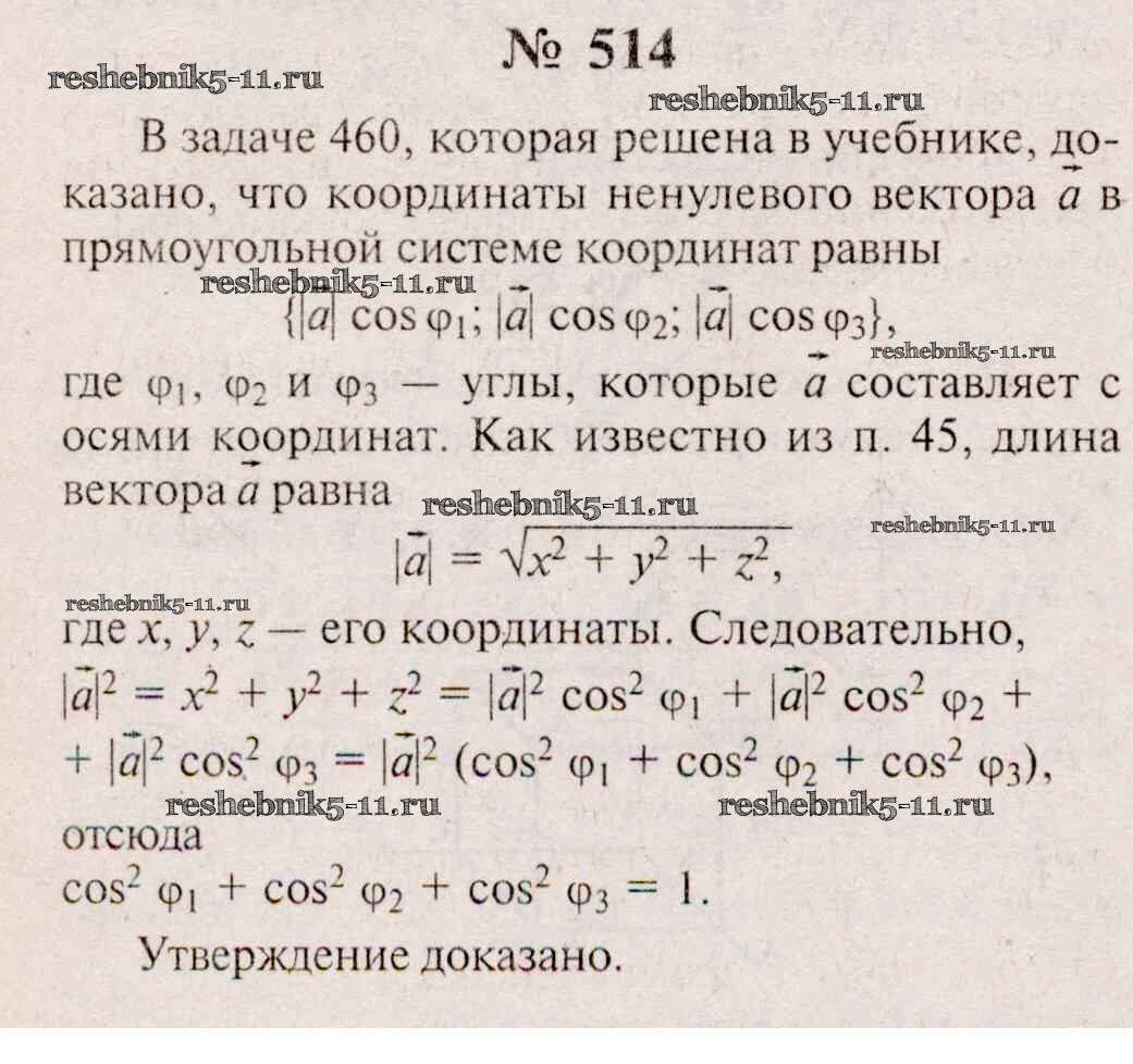 Геометрия за 10-11 класс Атанасян Учебник Базовый и углубленный уровень Просвещение задача 514