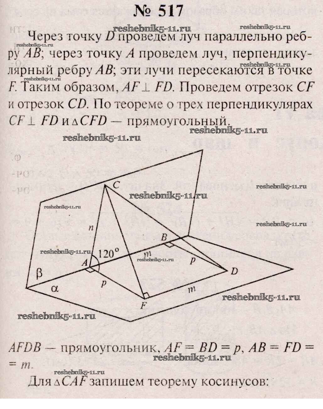Готовая домашняя работа с ответами по Геометрии за 10, 11 класс Атанасян, Бутузов, Кадомцев, Киселева, Позняк Учебник Базовый и углубленный уровень Просвещение 2015 ФГОС - Задачи 517