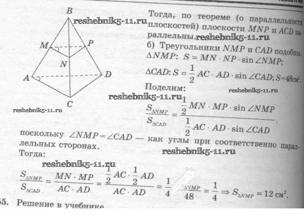 Готовая домашняя работа с ответами по Геометрии за 10, 11 класс Атанасян, Бутузов, Кадомцев, Киселева, Позняк Учебник Базовый и углубленный уровень Просвещение 2015 ФГОС - Задачи 54