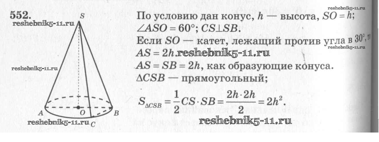 Готовая домашняя работа с ответами по Геометрии за 10, 11 класс Атанасян, Бутузов, Кадомцев, Киселева, Позняк Учебник Базовый и углубленный уровень Просвещение 2015 ФГОС - Задачи 552