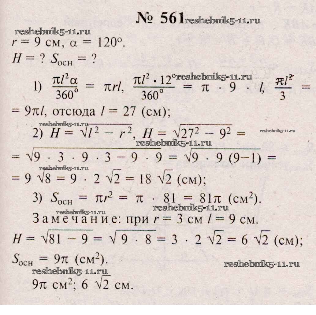 Готовая домашняя работа с ответами по Геометрии за 10, 11 класс Атанасян, Бутузов, Кадомцев, Киселева, Позняк Учебник Базовый и углубленный уровень Просвещение 2015 ФГОС - Задачи 561