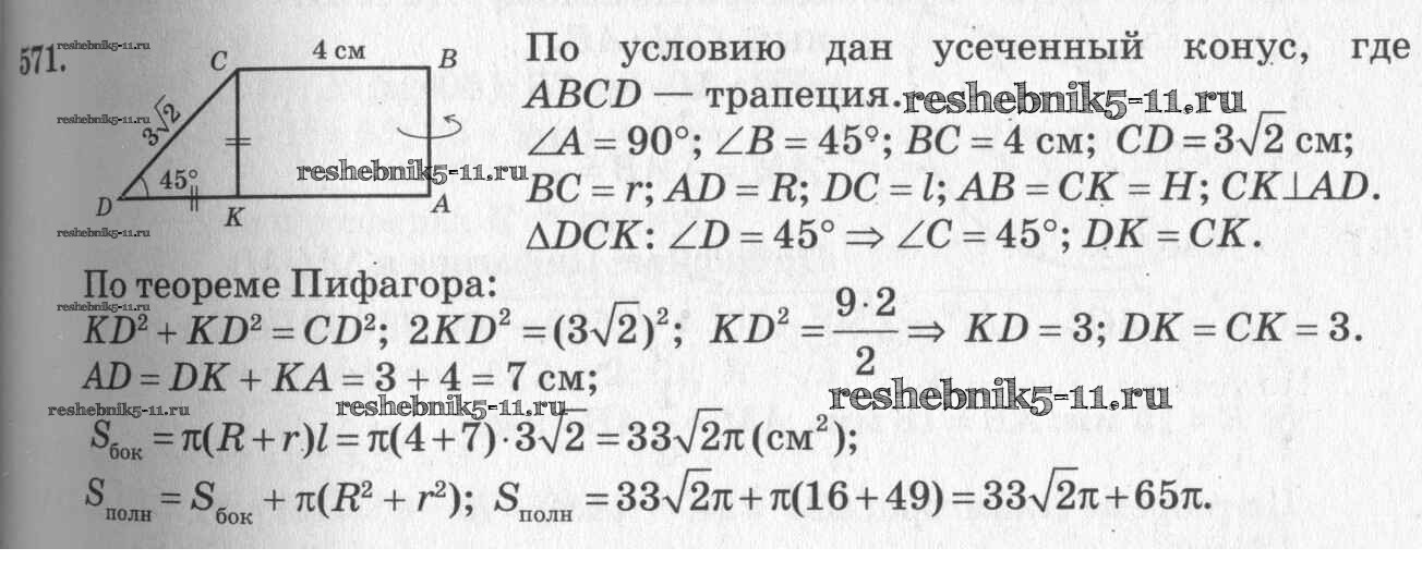 Готовая домашняя работа с ответами по Геометрии за 10, 11 класс Атанасян, Бутузов, Кадомцев, Киселева, Позняк Учебник Базовый и углубленный уровень Просвещение 2015 ФГОС - Задачи 571