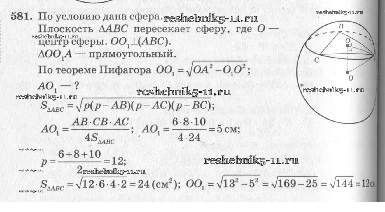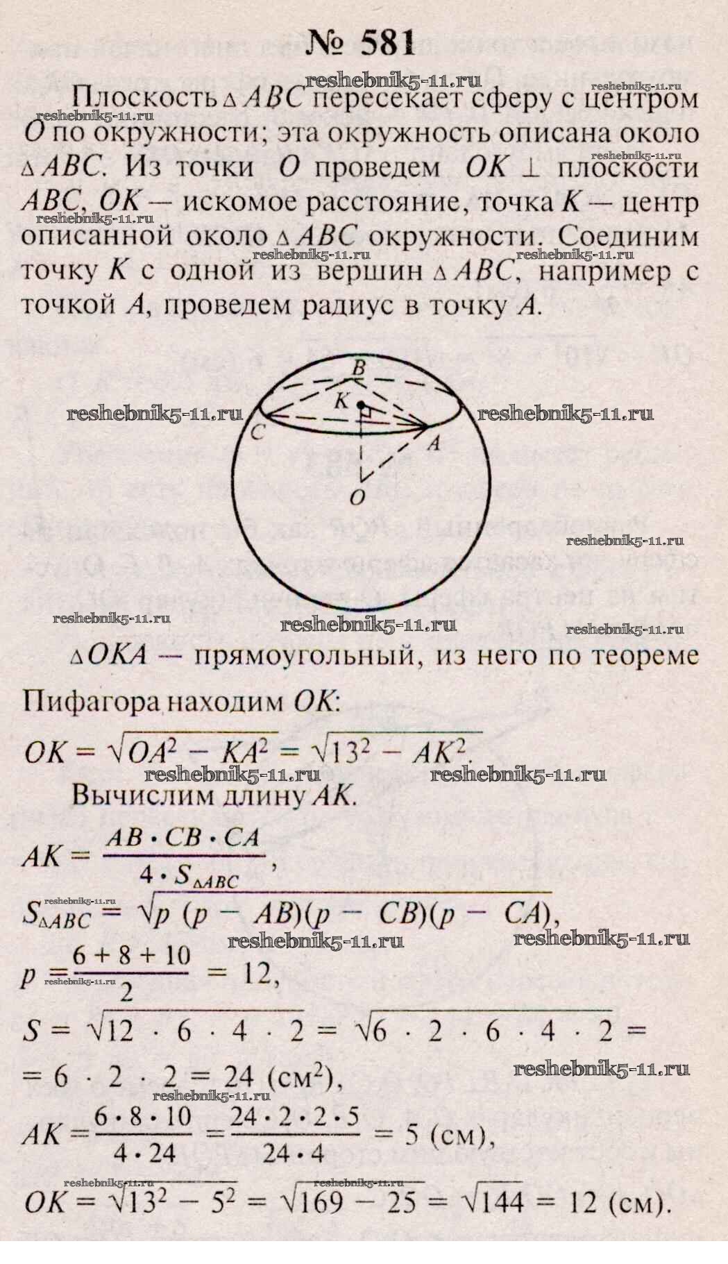 Готовая домашняя работа с ответами по Геометрии за 10, 11 класс Атанасян, Бутузов, Кадомцев, Киселева, Позняк Учебник Базовый и углубленный уровень Просвещение 2015 ФГОС - Задачи 581