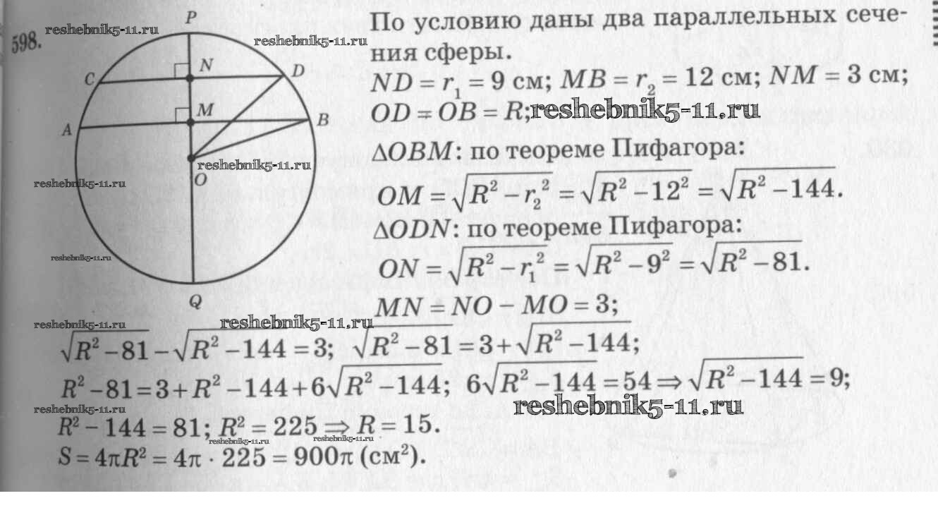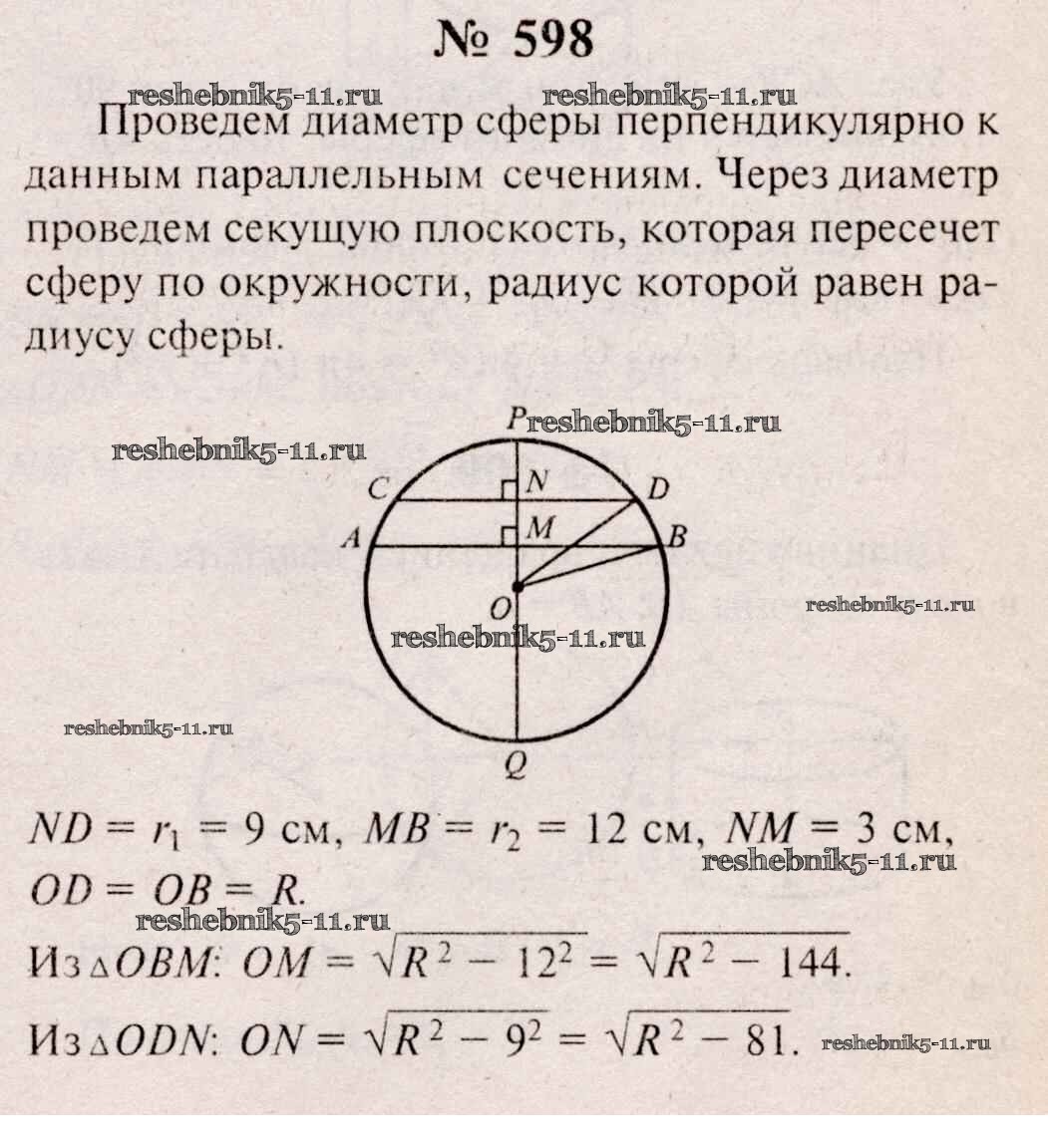 Готовая домашняя работа с ответами по Геометрии за 10, 11 класс Атанасян, Бутузов, Кадомцев, Киселева, Позняк Учебник Базовый и углубленный уровень Просвещение 2015 ФГОС - Задачи 598