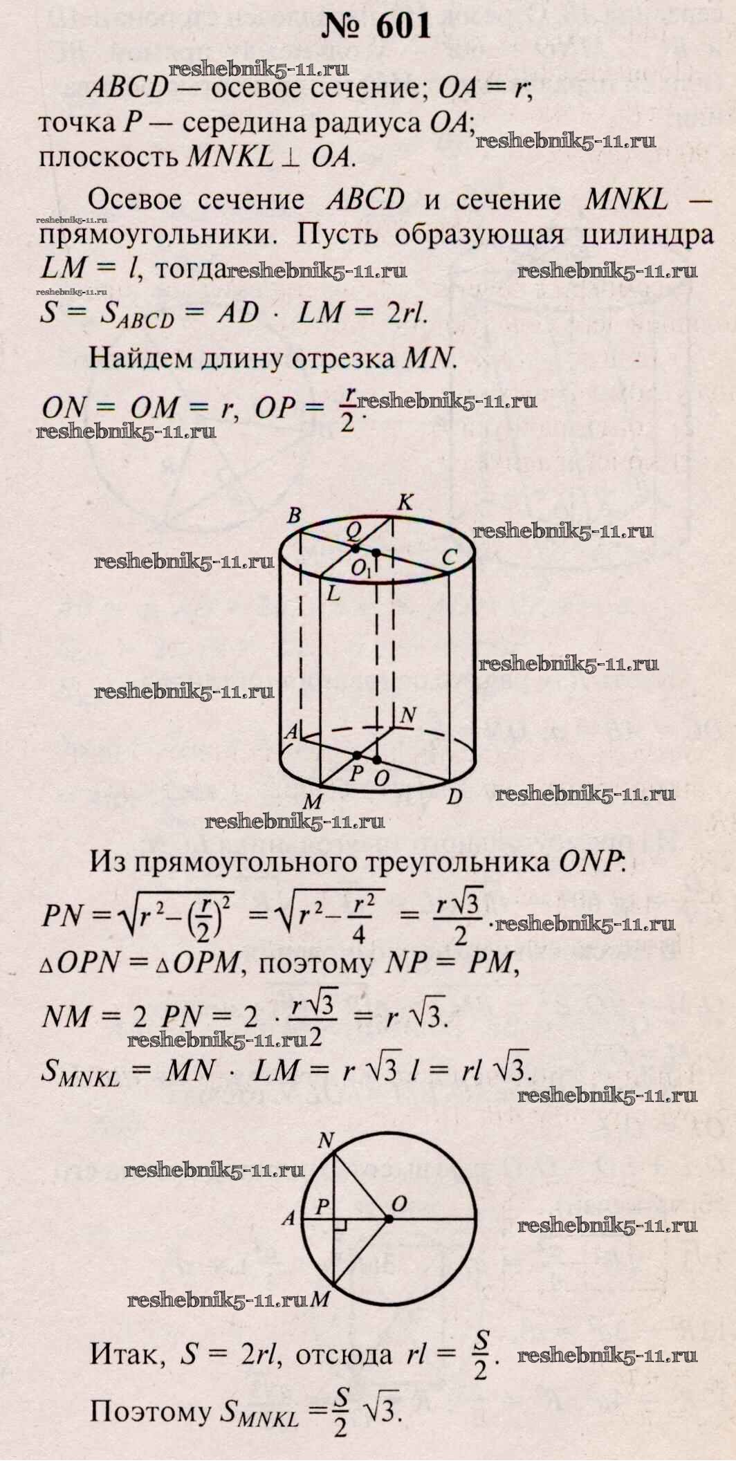 Готовая домашняя работа с ответами по Геометрии за 10, 11 класс Атанасян, Бутузов, Кадомцев, Киселева, Позняк Учебник Базовый и углубленный уровень Просвещение 2015 ФГОС - Задачи 601