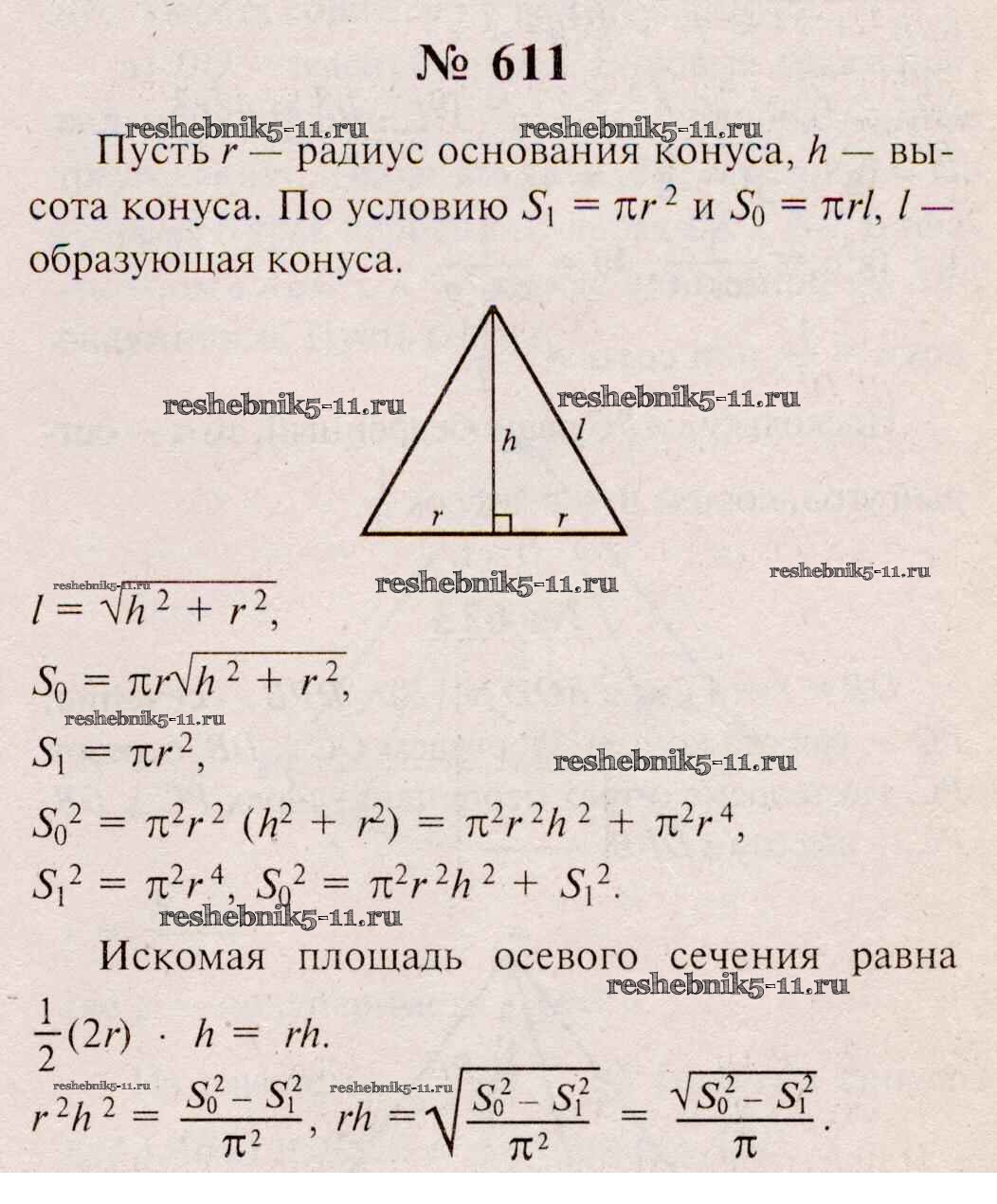 Готовая домашняя работа с ответами по Геометрии за 10, 11 класс Атанасян, Бутузов, Кадомцев, Киселева, Позняк Учебник Базовый и углубленный уровень Просвещение 2015 ФГОС - Задачи 611