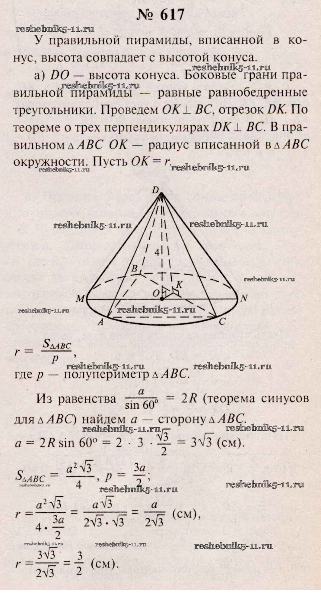 Готовая домашняя работа с ответами по Геометрии за 10, 11 класс Атанасян, Бутузов, Кадомцев, Киселева, Позняк Учебник Базовый и углубленный уровень Просвещение 2015 ФГОС - Задачи 617