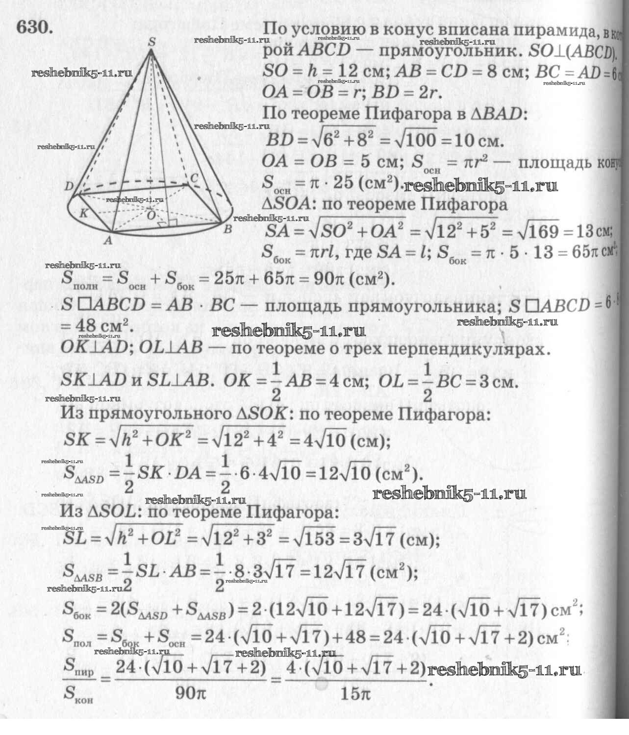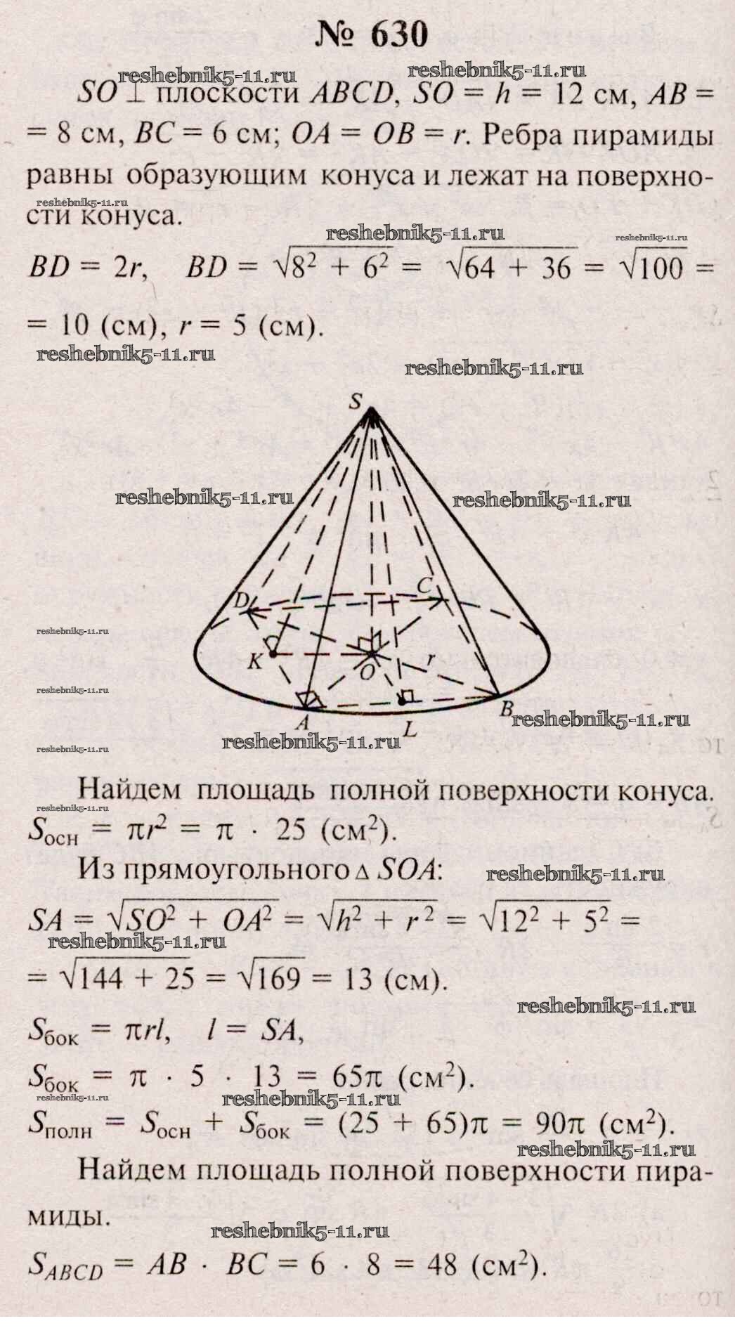 Готовая домашняя работа с ответами по Геометрии за 10, 11 класс Атанасян, Бутузов, Кадомцев, Киселева, Позняк Учебник Базовый и углубленный уровень Просвещение 2015 ФГОС - Задачи 630