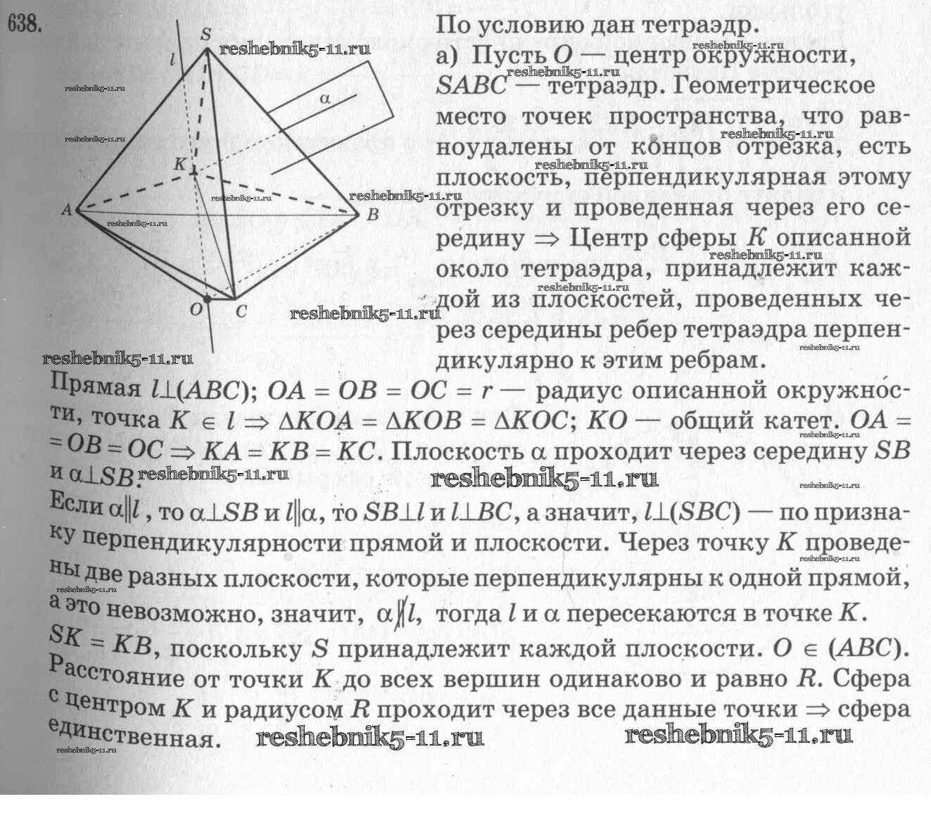 Готовая домашняя работа с ответами по Геометрии за 10, 11 класс Атанасян, Бутузов, Кадомцев, Киселева, Позняк Учебник Базовый и углубленный уровень Просвещение 2015 ФГОС - Задачи 638