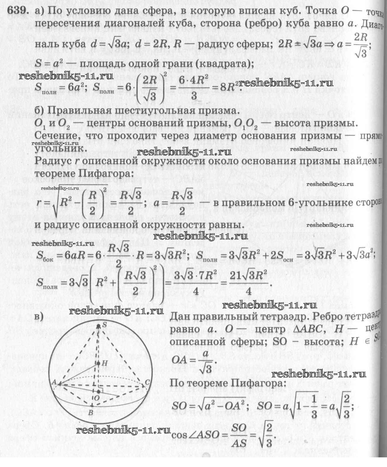 Готовая домашняя работа с ответами по Геометрии за 10, 11 класс Атанасян, Бутузов, Кадомцев, Киселева, Позняк Учебник Базовый и углубленный уровень Просвещение 2015 ФГОС - Задачи 639