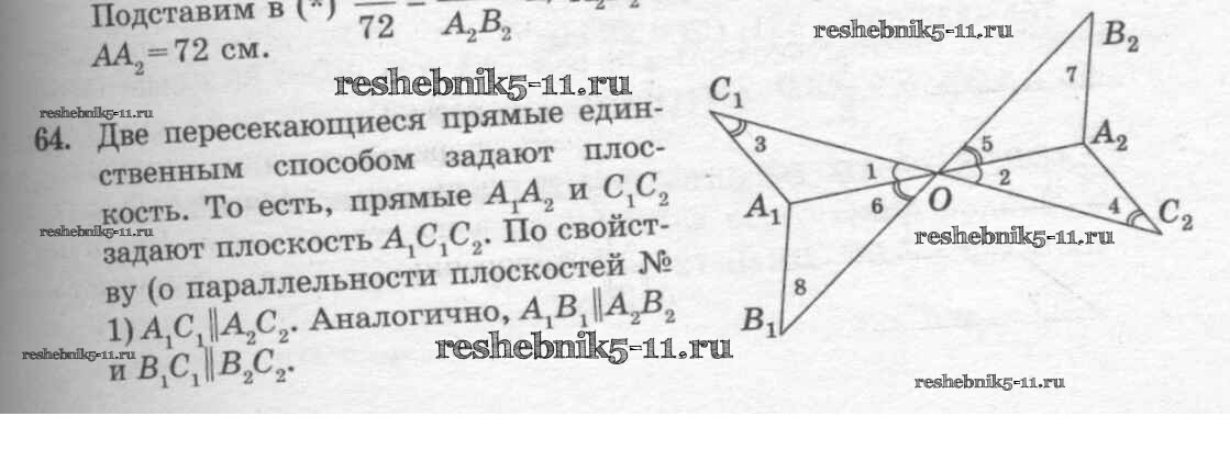 Готовая домашняя работа с ответами по Геометрии за 10, 11 класс Атанасян, Бутузов, Кадомцев, Киселева, Позняк Учебник Базовый и углубленный уровень Просвещение 2015 ФГОС - Задачи 64