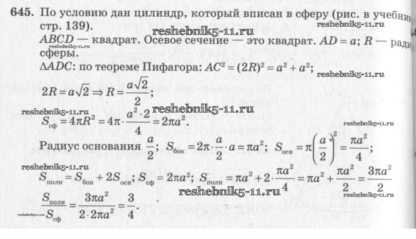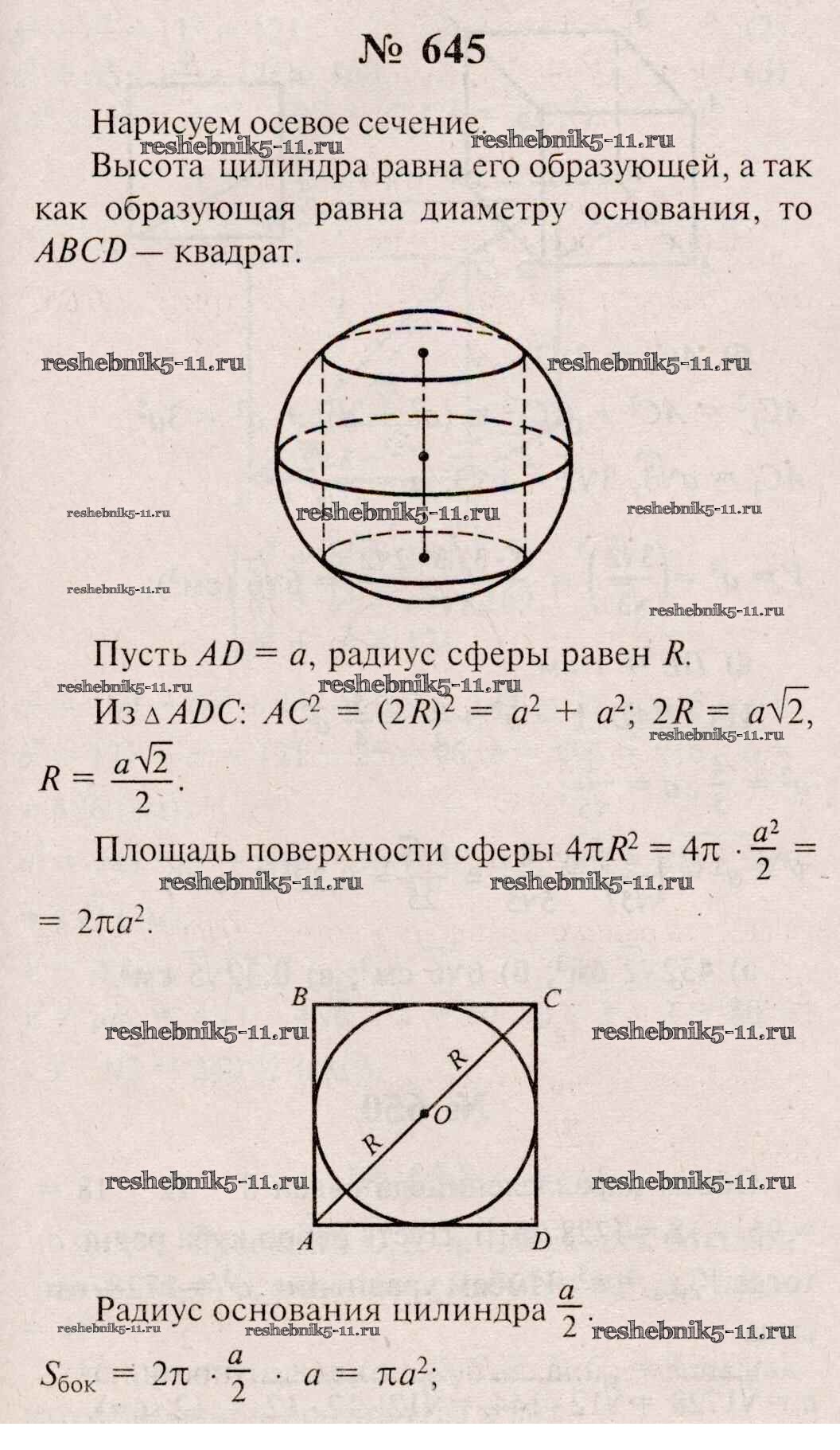 Готовая домашняя работа с ответами по Геометрии за 10, 11 класс Атанасян, Бутузов, Кадомцев, Киселева, Позняк Учебник Базовый и углубленный уровень Просвещение 2015 ФГОС - Задачи 645