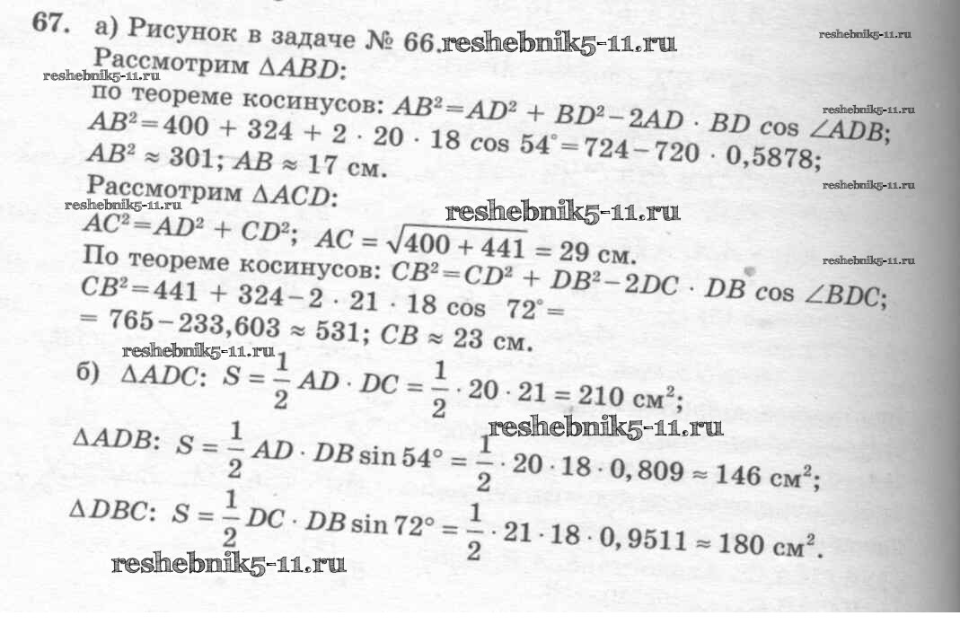 Готовая домашняя работа с ответами по Геометрии за 10, 11 класс Атанасян, Бутузов, Кадомцев, Киселева, Позняк Учебник Базовый и углубленный уровень Просвещение 2015 ФГОС - Задачи 67