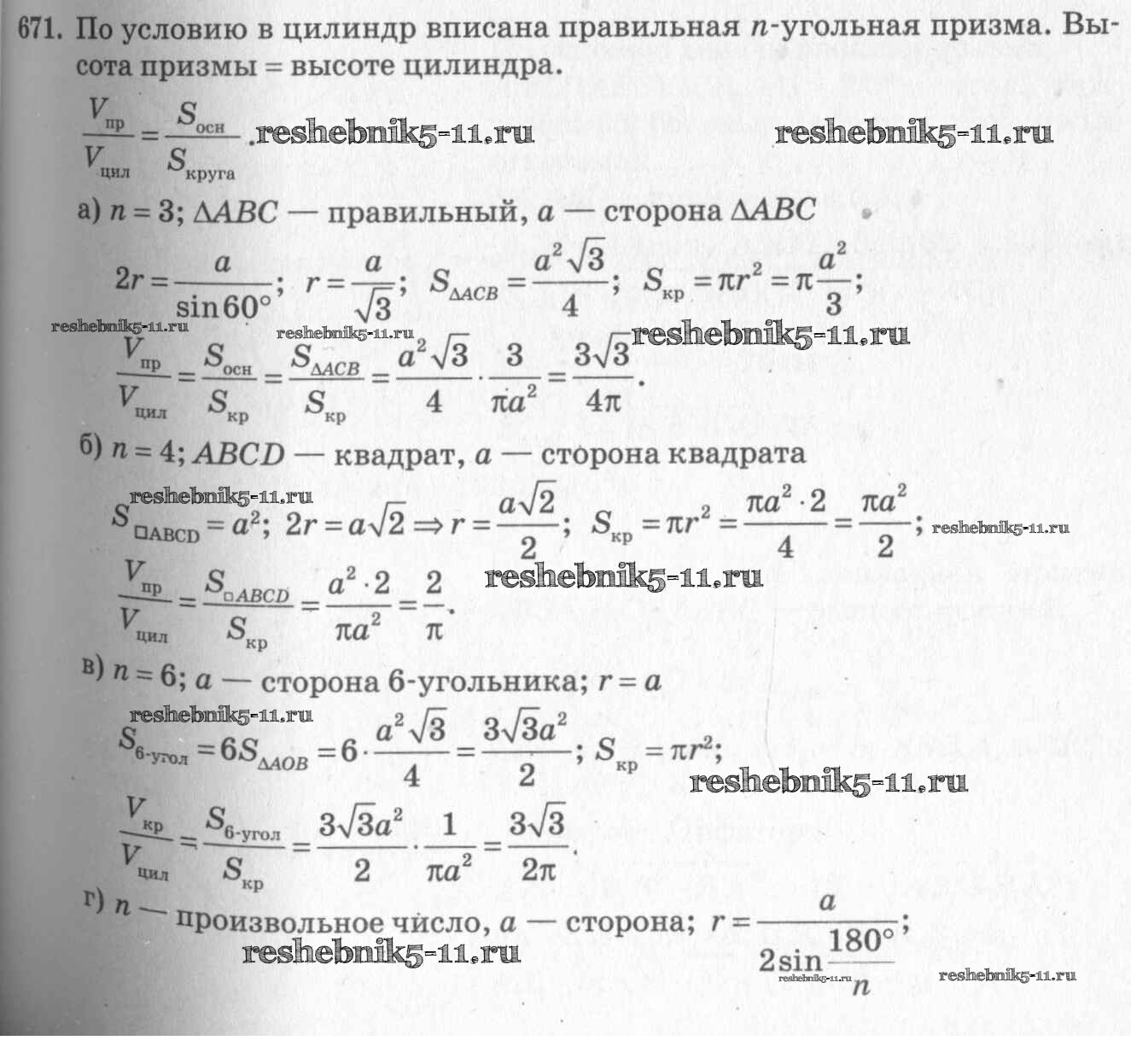 Готовая домашняя работа с ответами по Геометрии за 10, 11 класс Атанасян, Бутузов, Кадомцев, Киселева, Позняк Учебник Базовый и углубленный уровень Просвещение 2015 ФГОС - Задачи 671