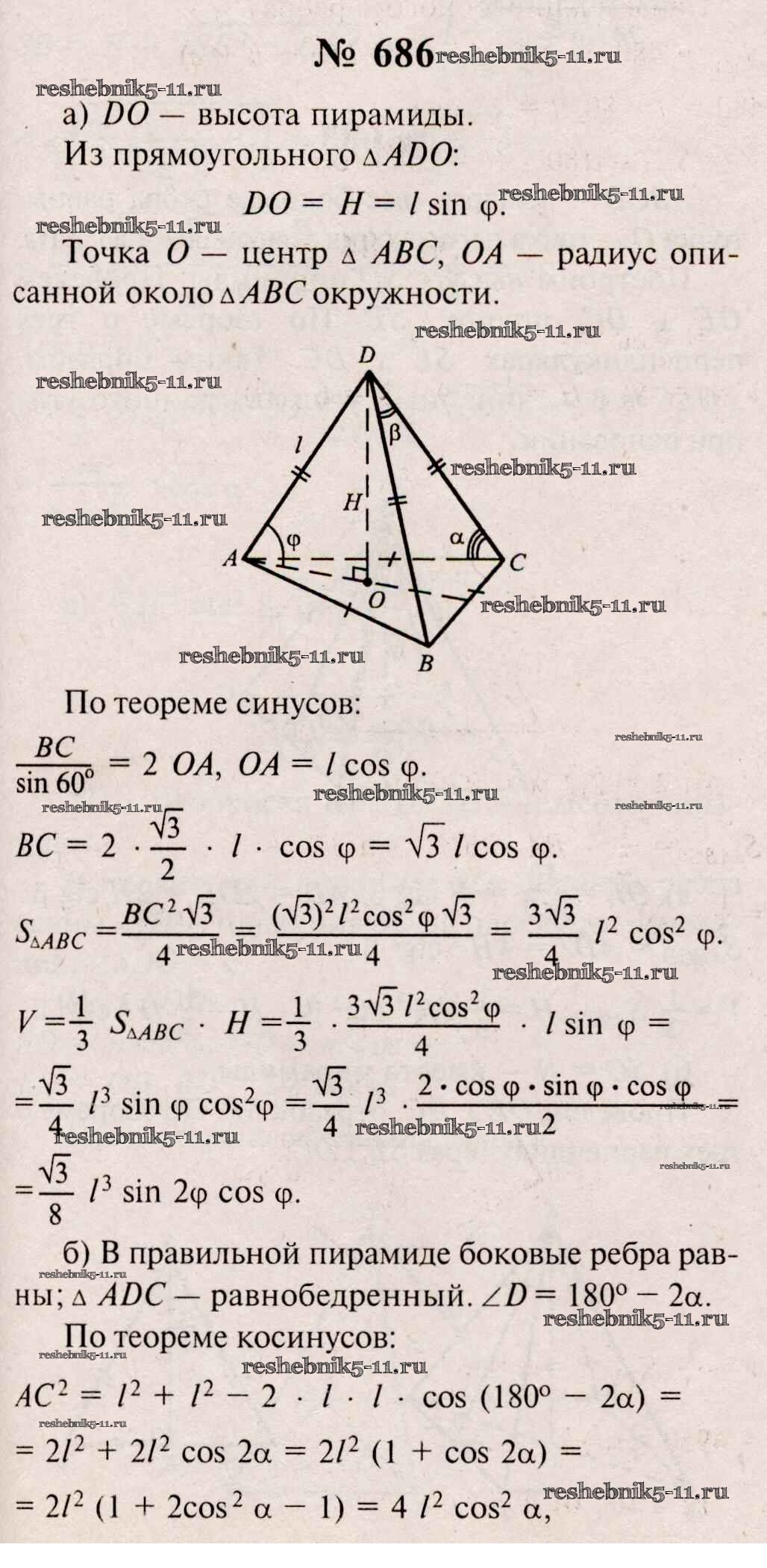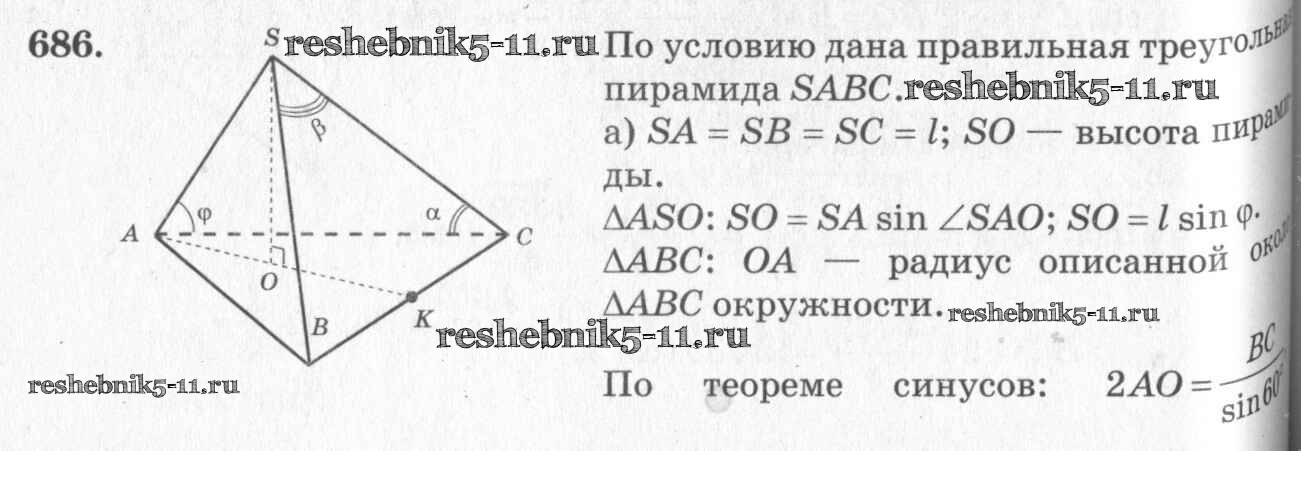 Готовая домашняя работа с ответами по Геометрии за 10, 11 класс Атанасян, Бутузов, Кадомцев, Киселева, Позняк Учебник Базовый и углубленный уровень Просвещение 2015 ФГОС - Задачи 686