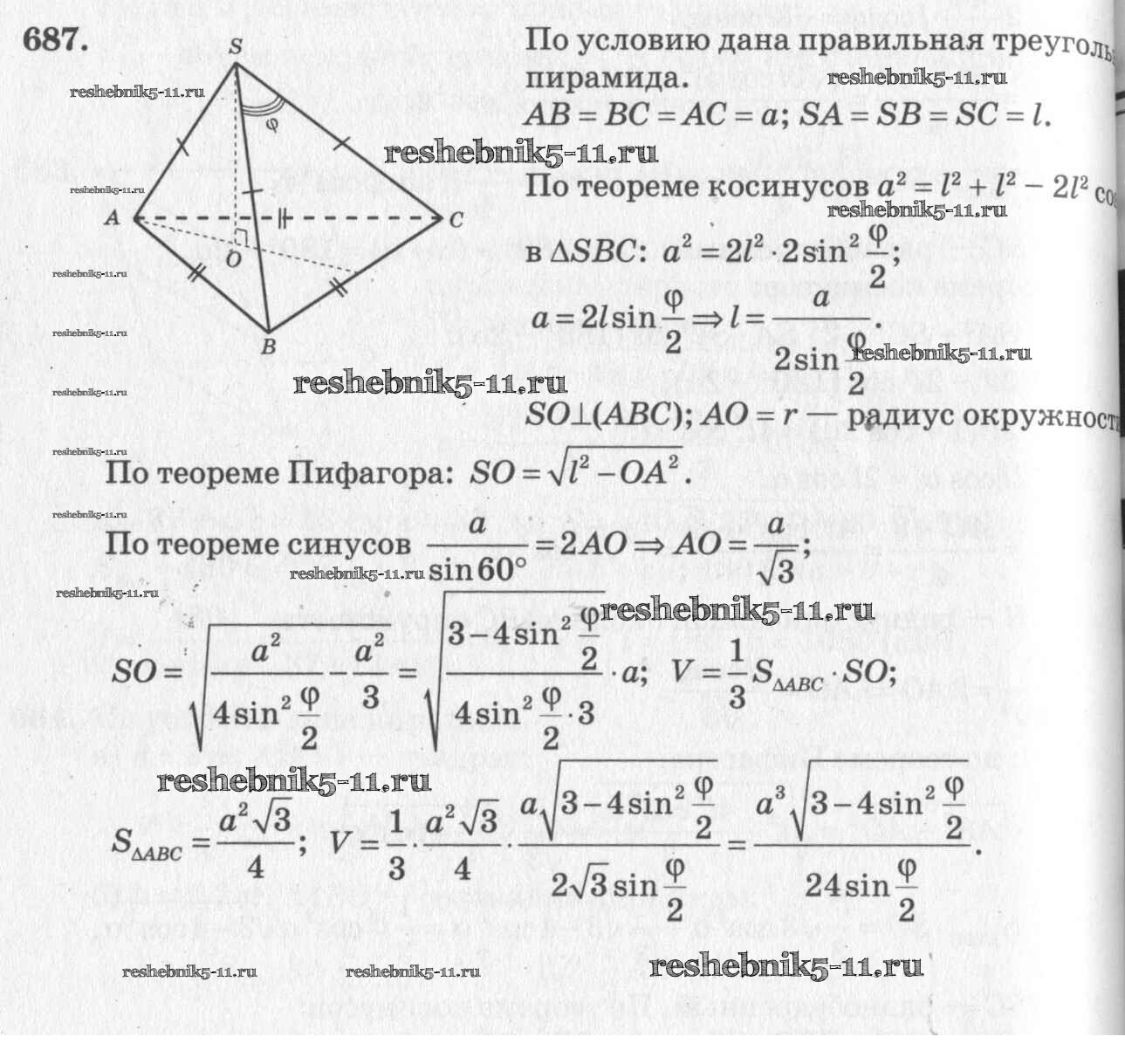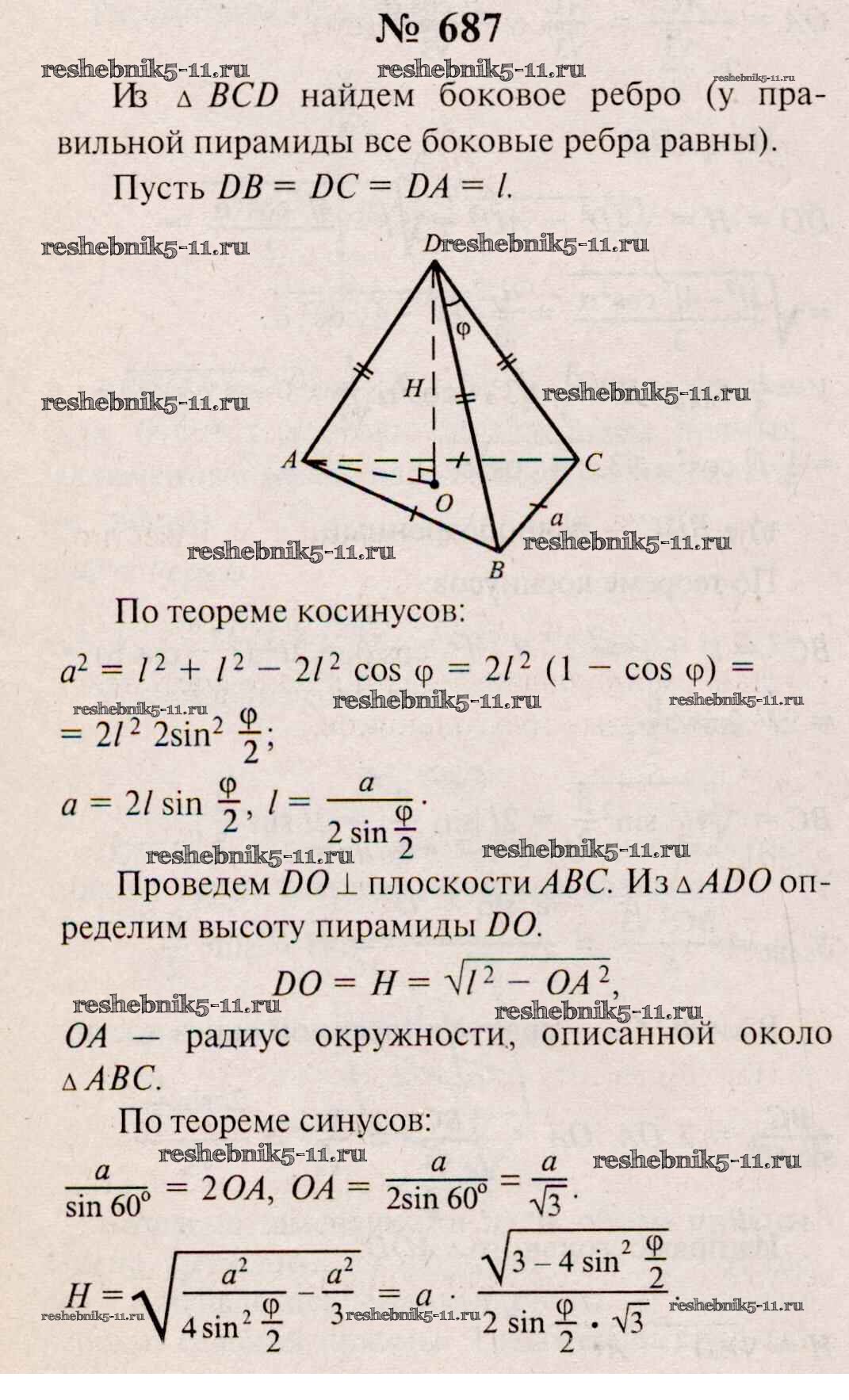 Готовая домашняя работа с ответами по Геометрии за 10, 11 класс Атанасян, Бутузов, Кадомцев, Киселева, Позняк Учебник Базовый и углубленный уровень Просвещение 2015 ФГОС - Задачи 687